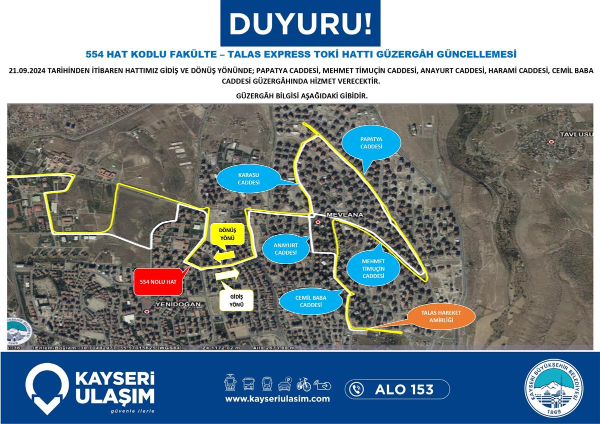 FAKÜLTE – TALAS EXPRESS TOKİ HATTI GÜZERGÂH GÜNCELLEMESİ