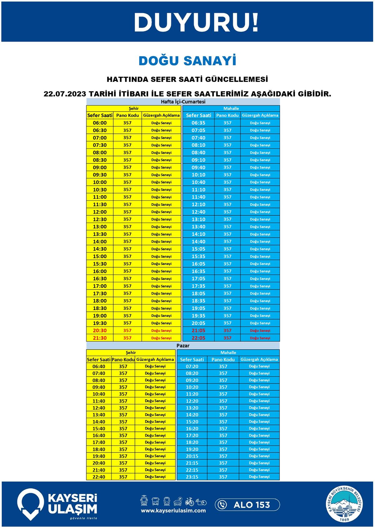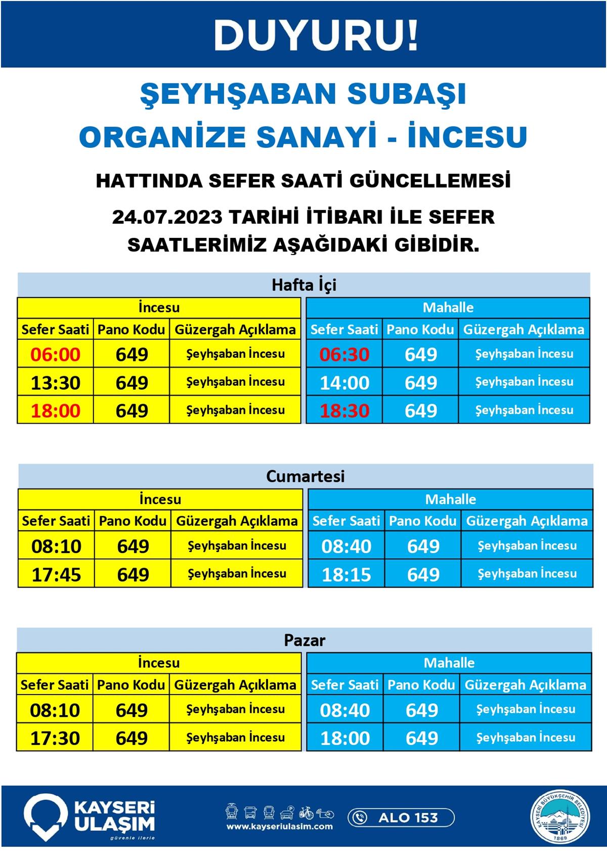 ŞEYHŞABAN SUBAŞI ORGANİZE SANAYİ HATTINDA SEFER SAATİ GÜNCELLEMESİ YAPILMIŞTIR.