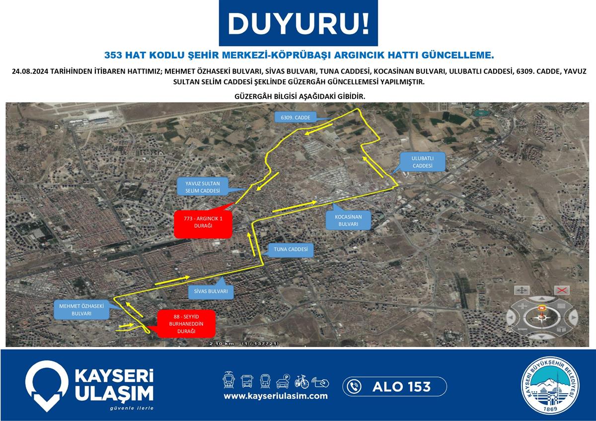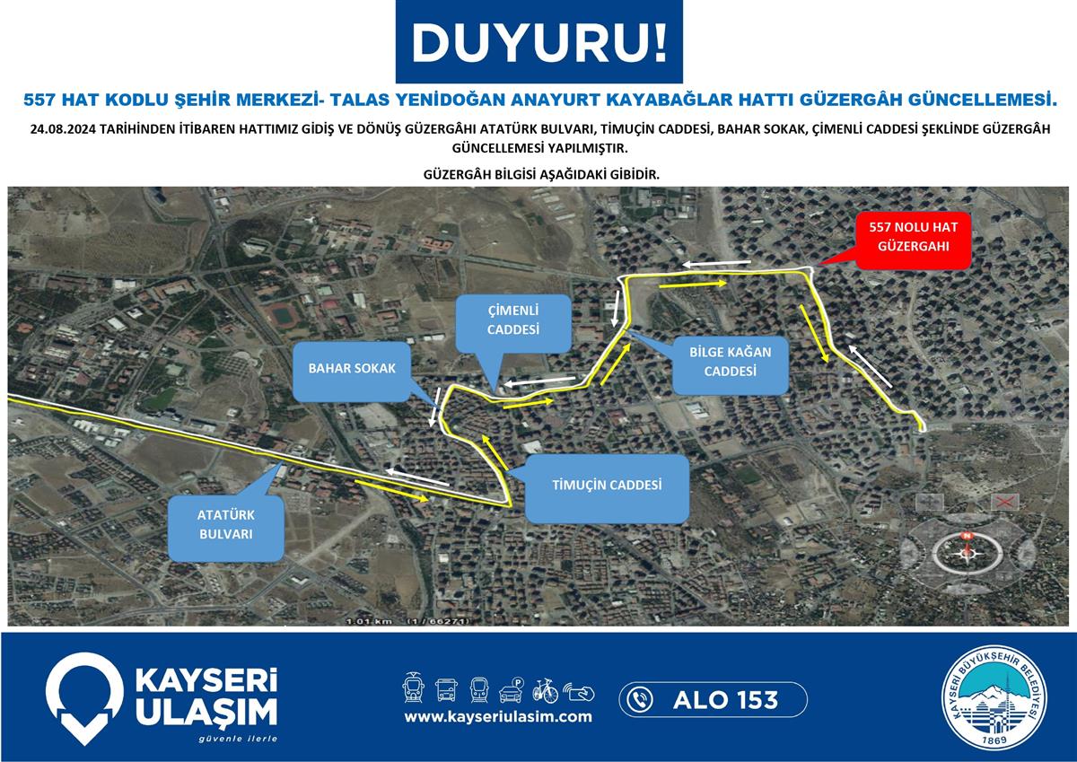 ŞEHİR MERKEZİ- TALAS YENİDOĞAN ANAYURT KAYABAĞLAR HATTI GÜZERGÂH GÜNCELLEMESİ.
