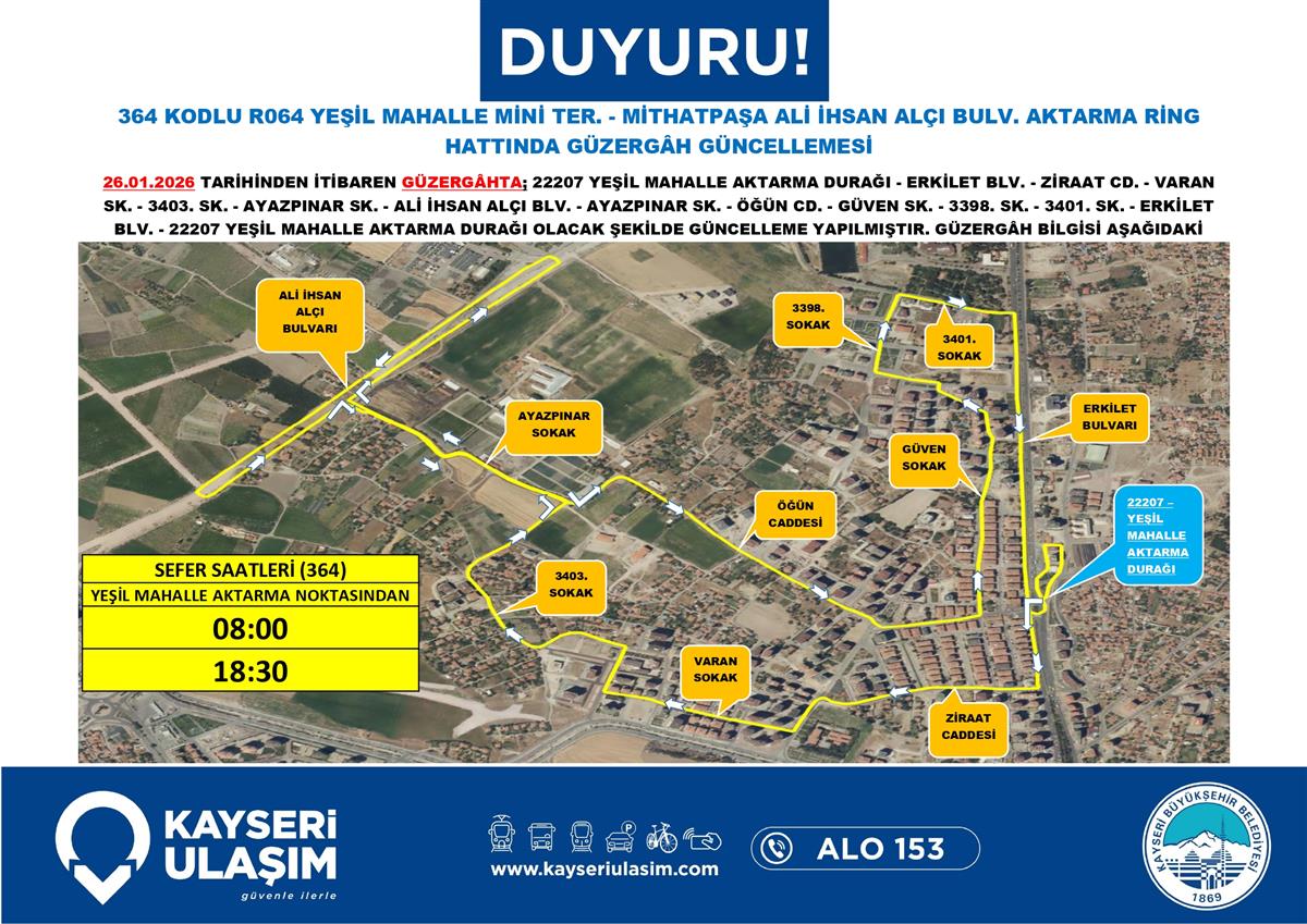 KAYSERİ ORGANİZE - İNCESU MEYDAN HATTINDA GÜZERGÂH GÜNCELLEMESİ