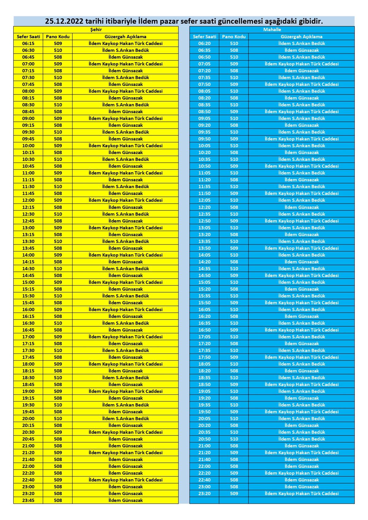 1 25.12.2022 tarihi itibariyle İldem Pazar günü sefer saatinde güncellemeye gidilmiştir.