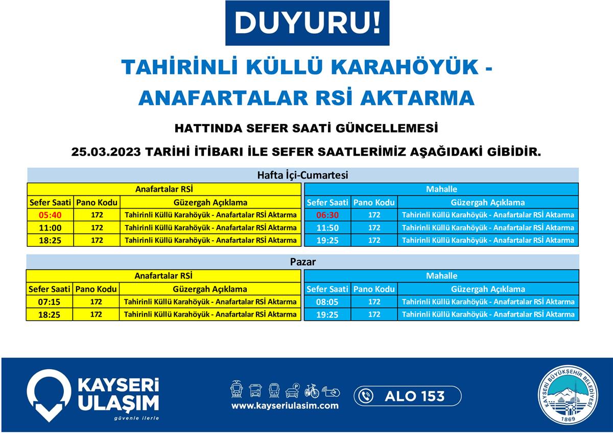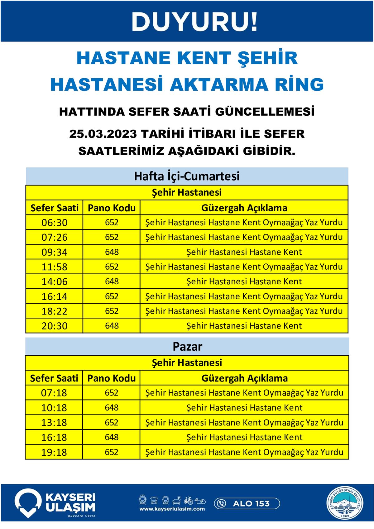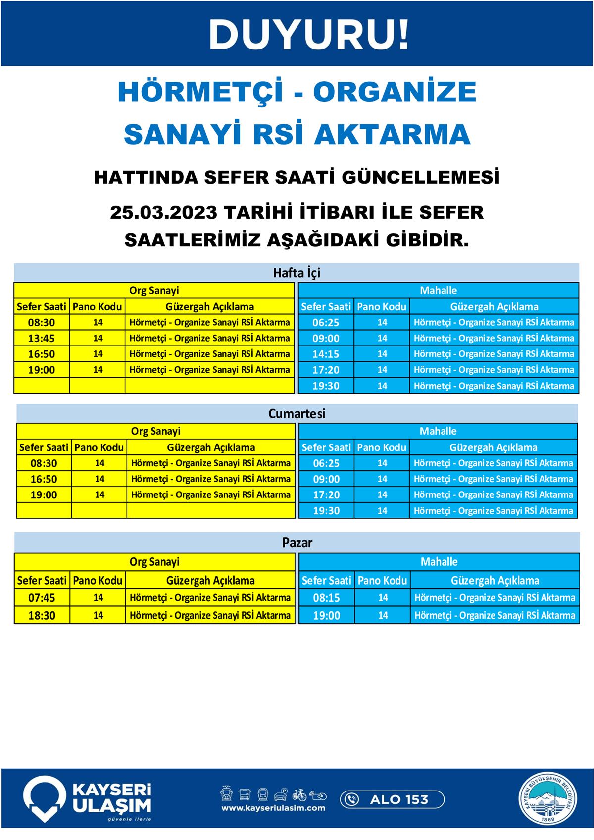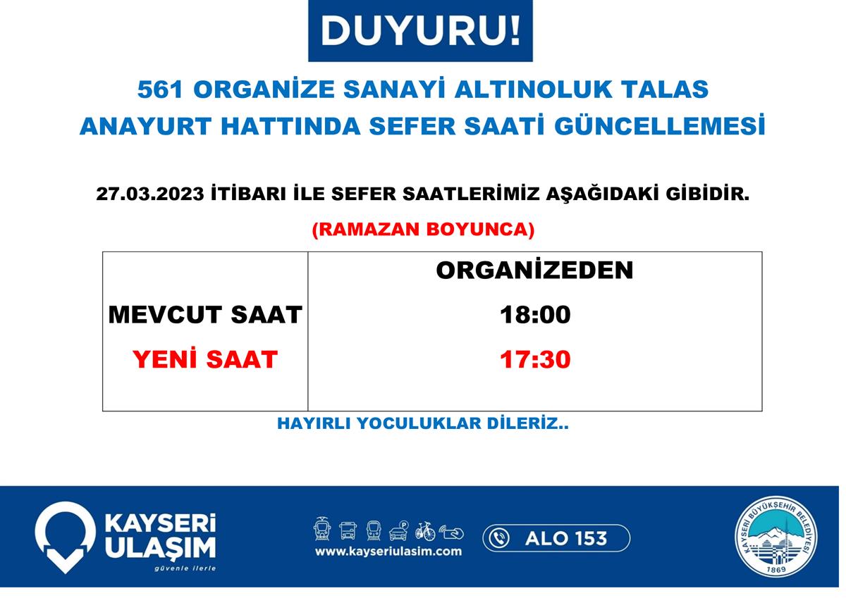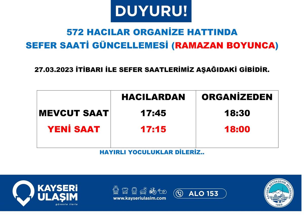 572 HACILAR ORGANİZE HATTINDA SEFER SAATİ GÜNCELLEMESİ (RAMAZAN BOYUNCA)