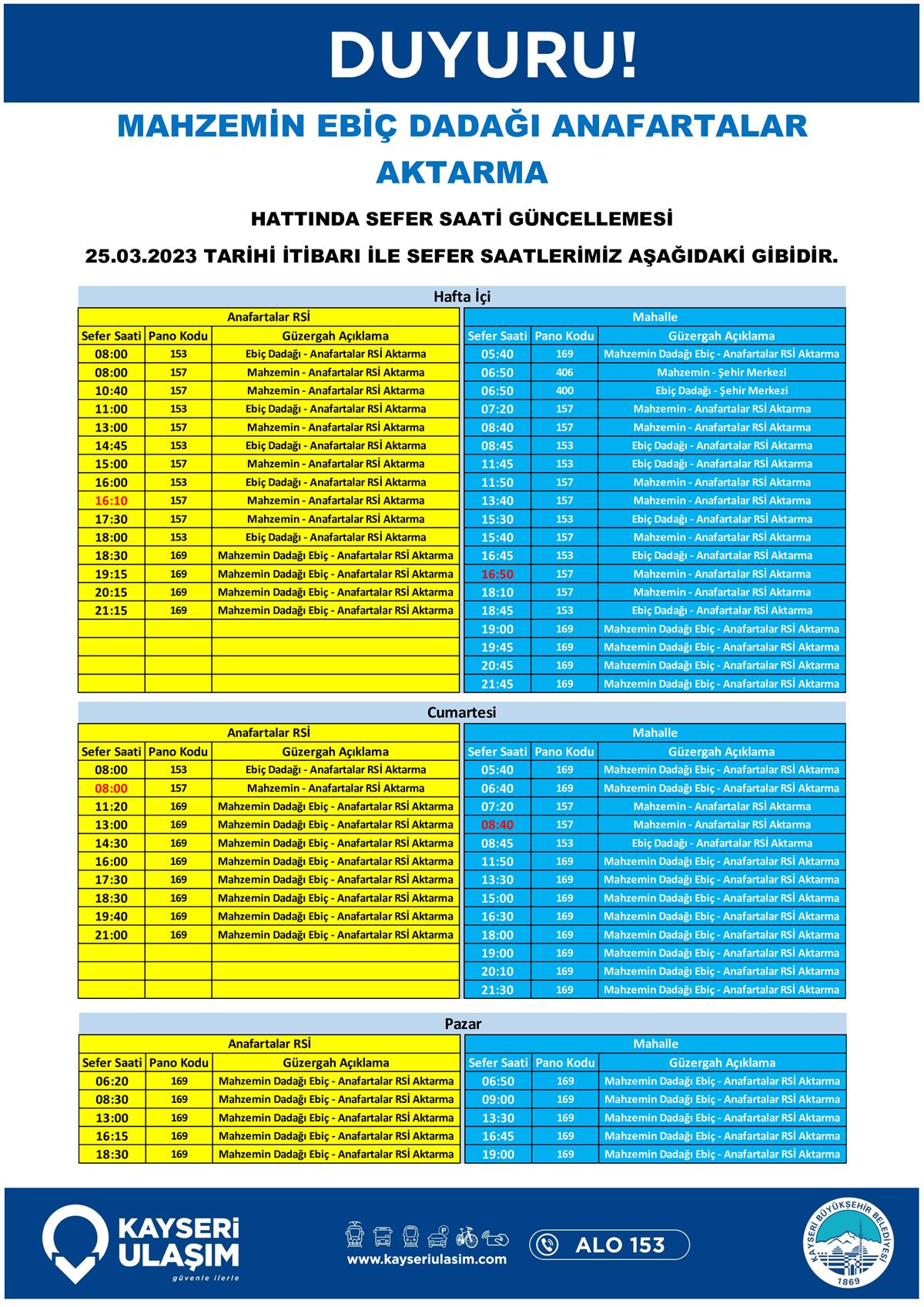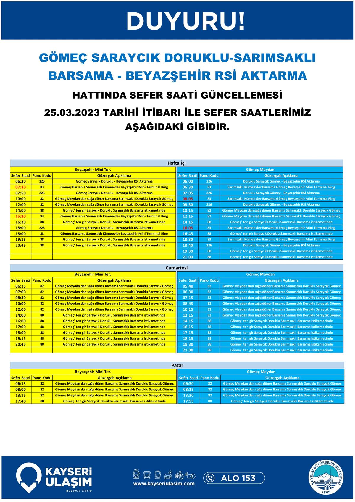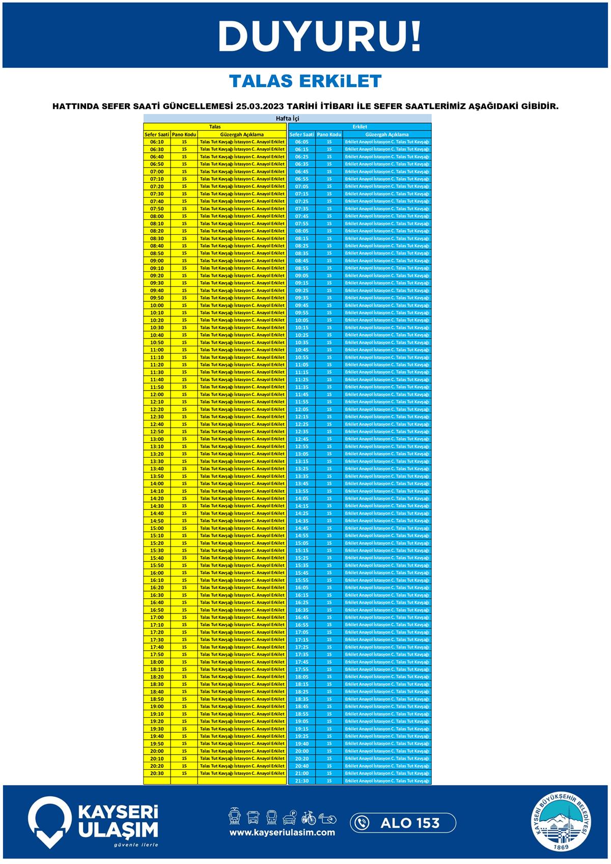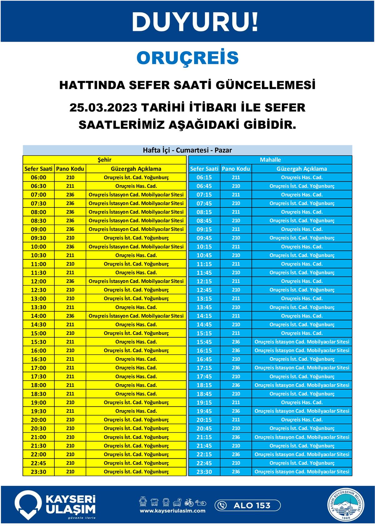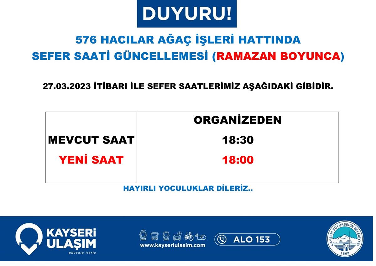 576 HACILAR AĞAÇ İŞLERİ HATTINDA SEFER SAATİ GÜNCELLEMESİ (RAMAZAN BOYUNCA)