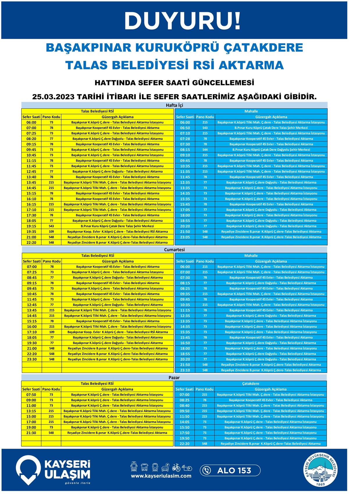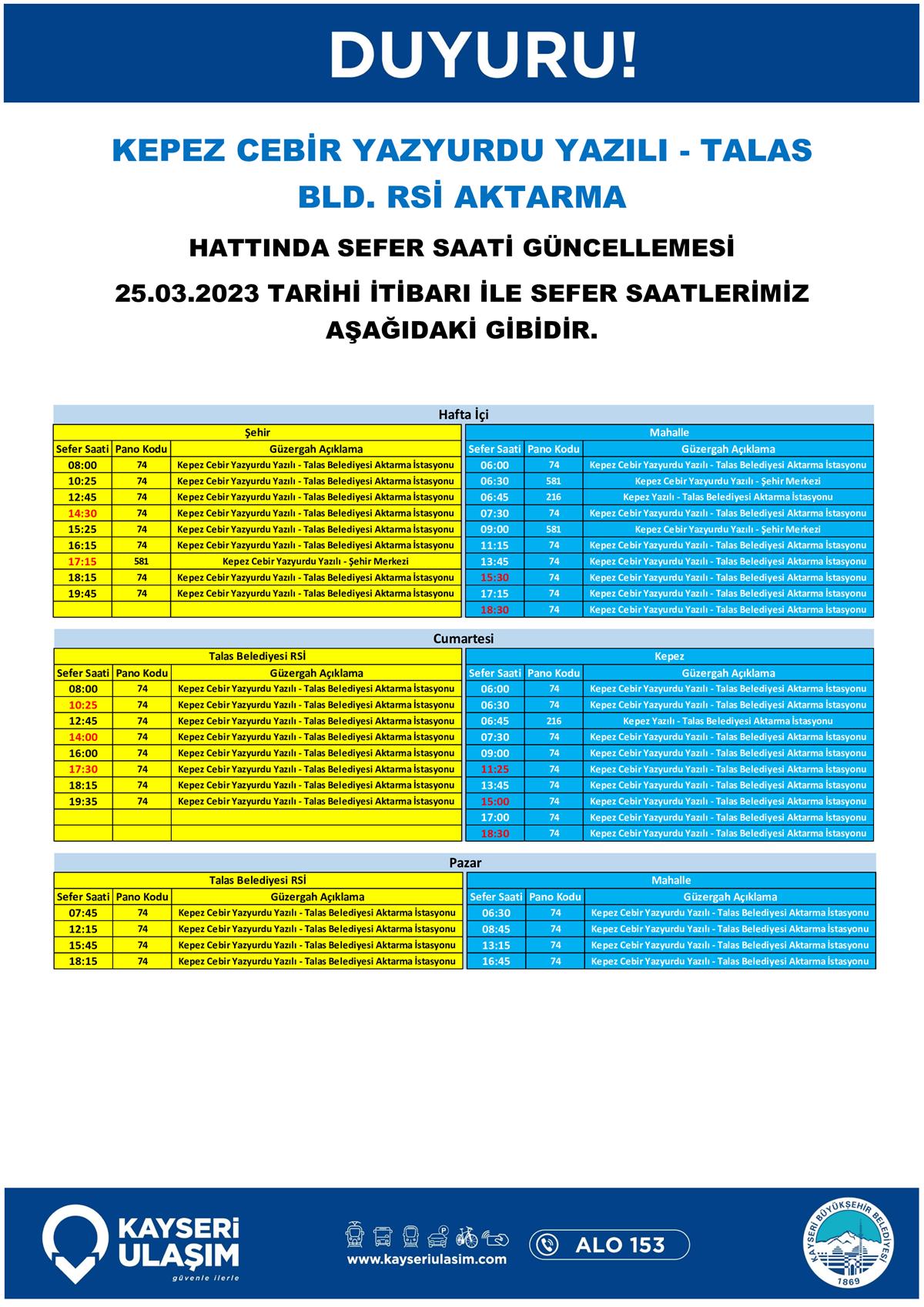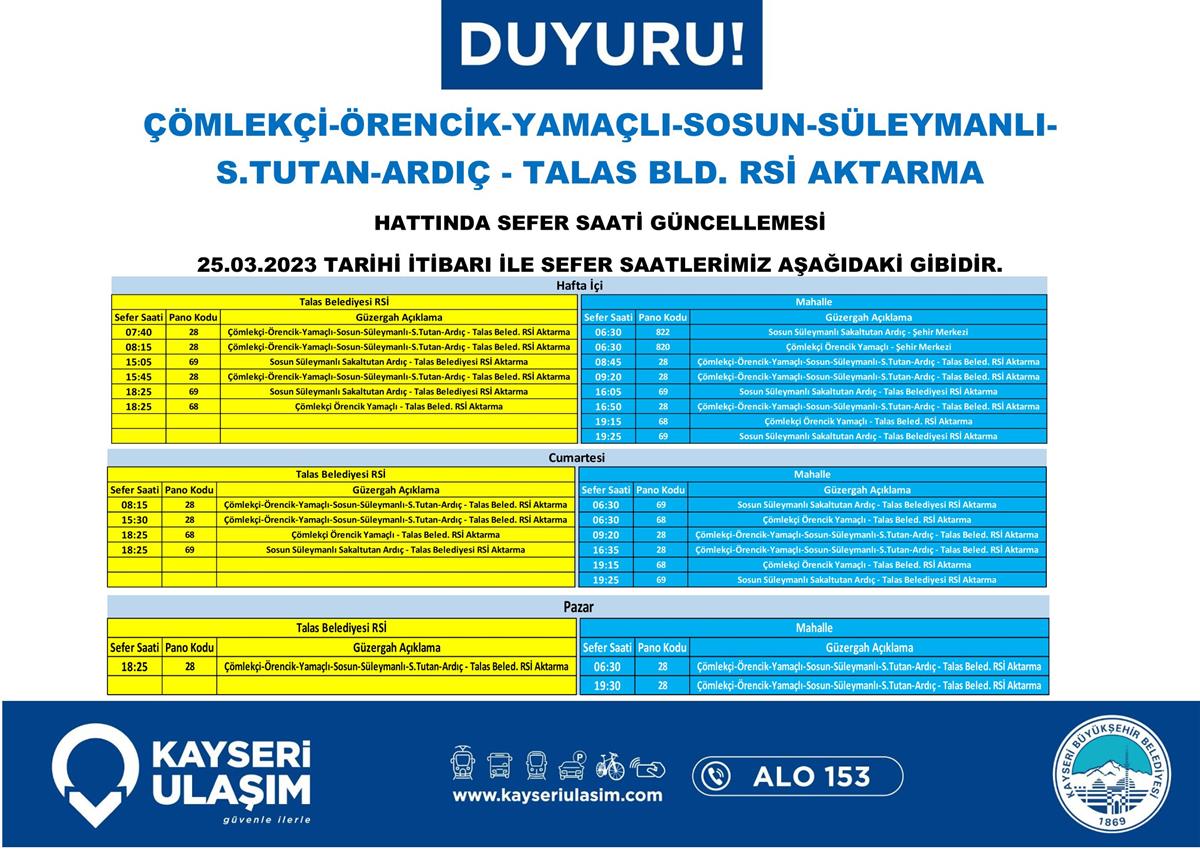 25-27 Mart 2023 Tarihi İtibari İle Bazı Sefer Saat Güncellemeleri