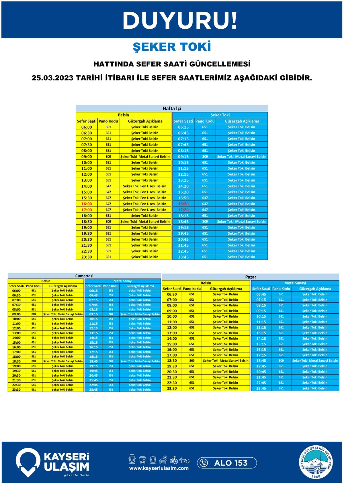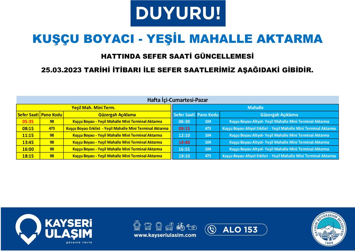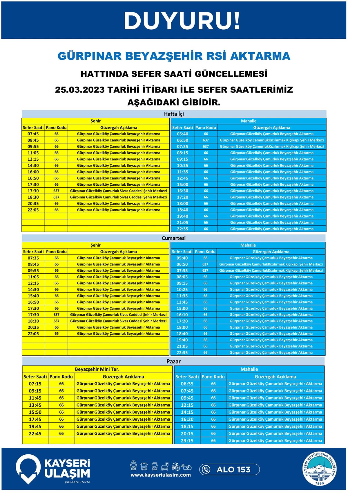 25-27 Mart 2023 Tarihi İtibari İle Bazı Sefer Saat Güncellemeleri