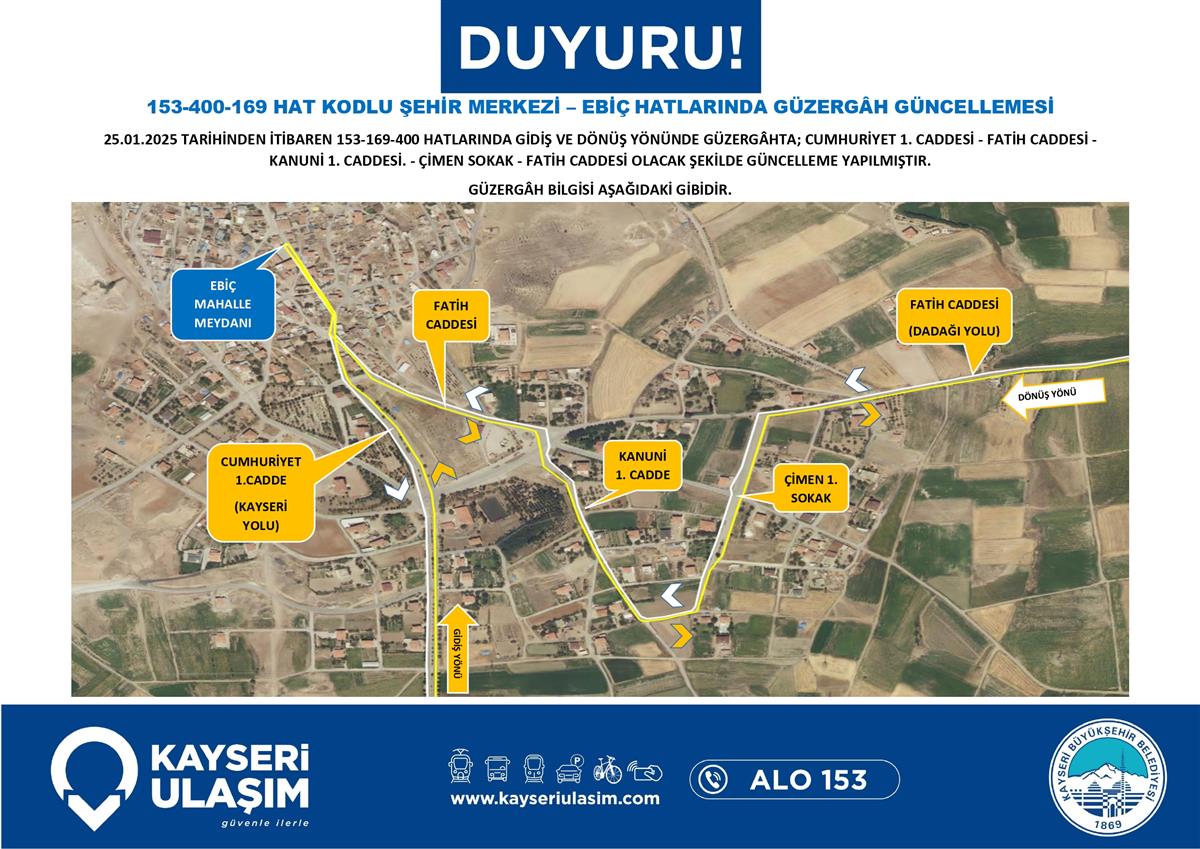 25 Ocak 2025 Tarihinden itibaren Bazı Sefer Saat ve Güzergah Güncellemeleri Yapılmıştır.