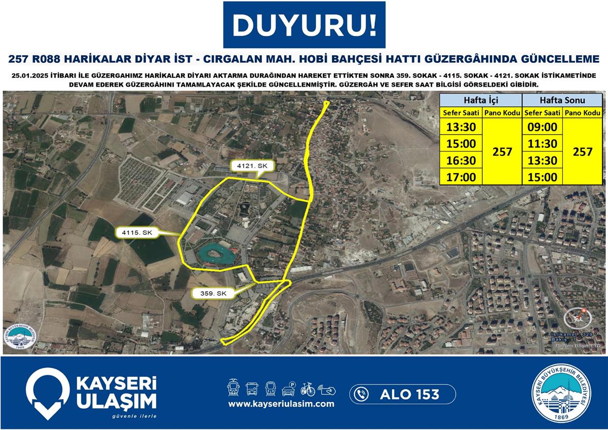 HARİKALAR DİYAR İST - CIRGALAN MAH. HOBİ BAHÇESİ HATTI GÜZERGÂHINDA GÜNCELLEMESİ