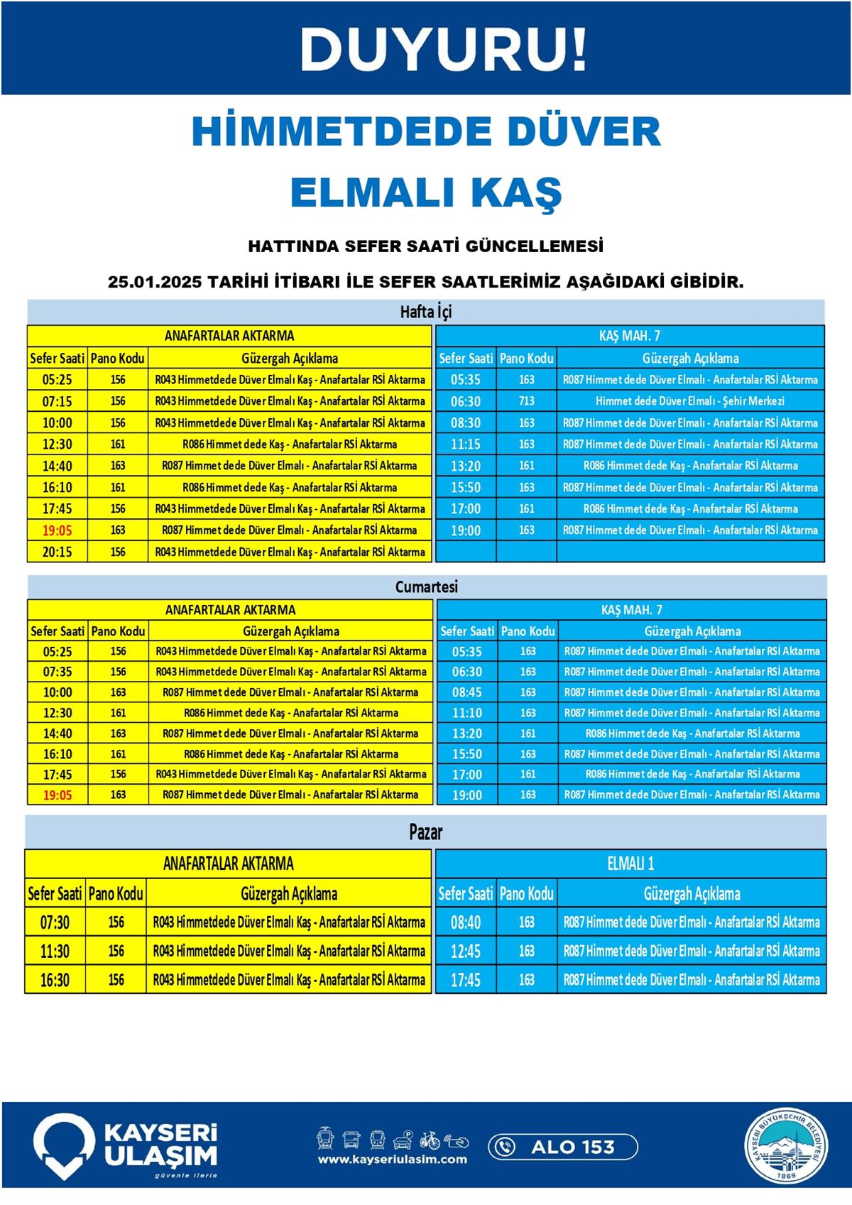 HİMMETDEDE DÜVER ELMALI KAŞ HATTINDA SEFER SAATİ GÜNCELLEMESİ