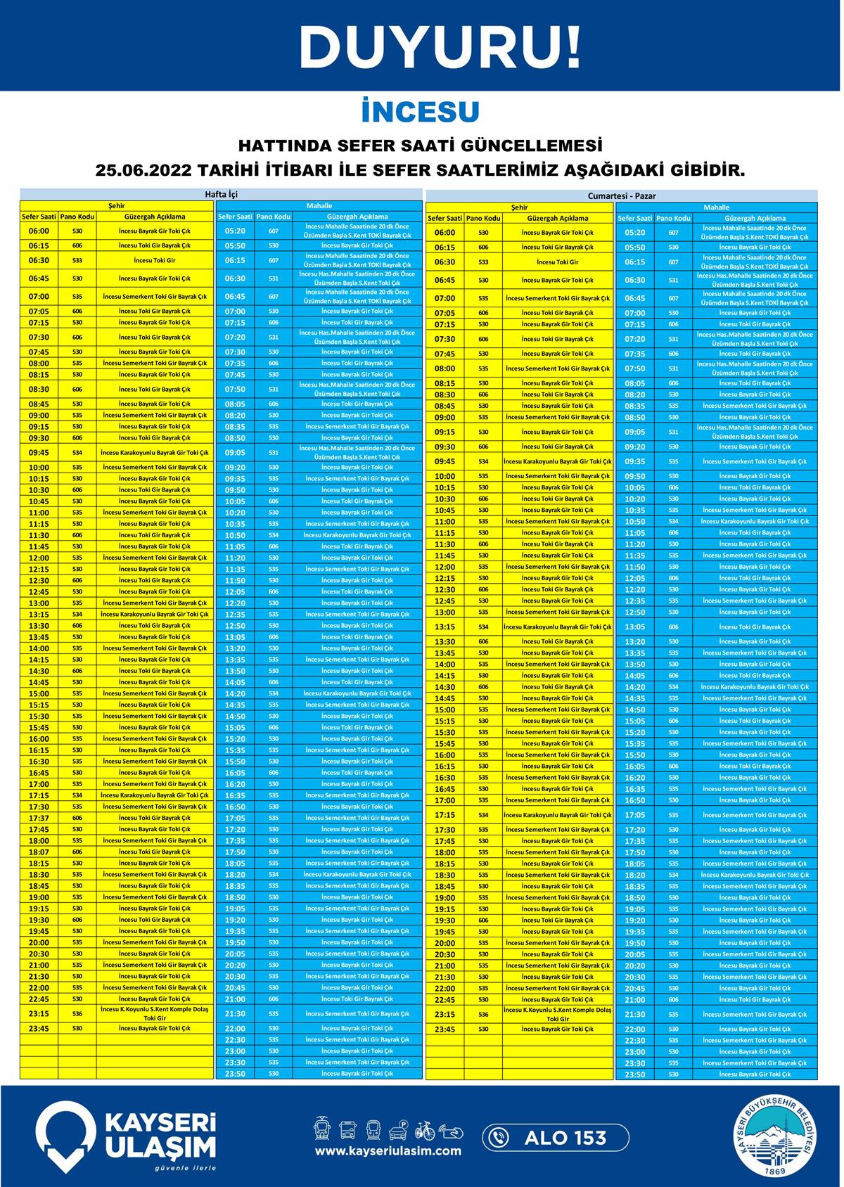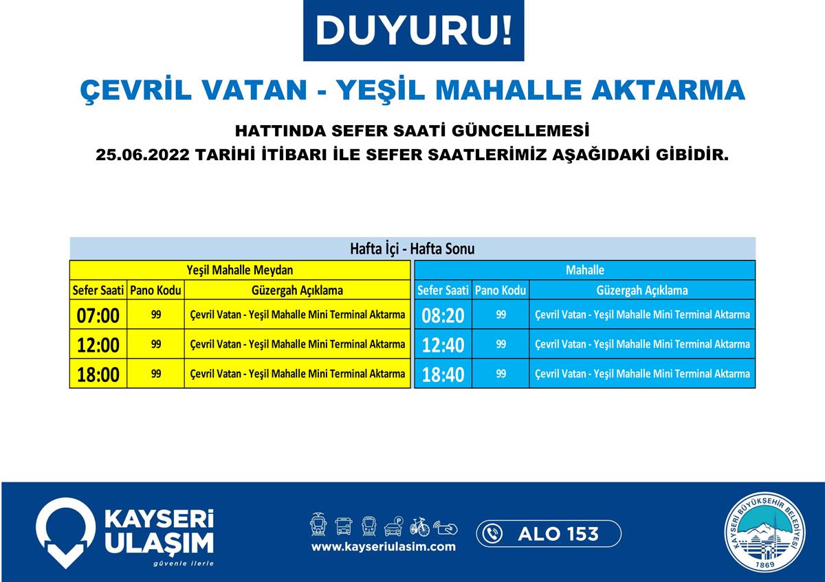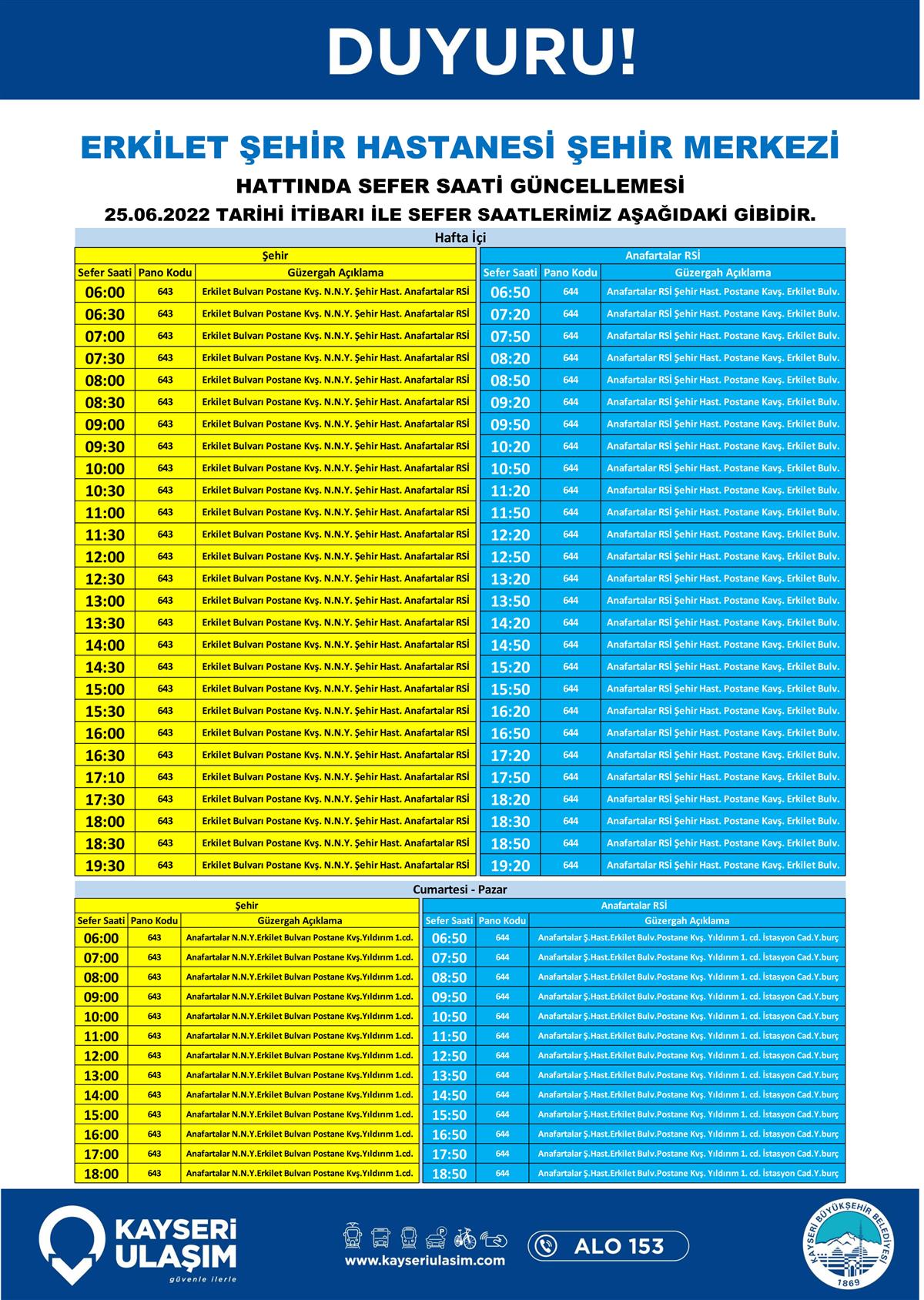 25.06.2022 Tarihinden İtibaren Değişik Yapılacak Otobüs Seferleri Duyurusu!