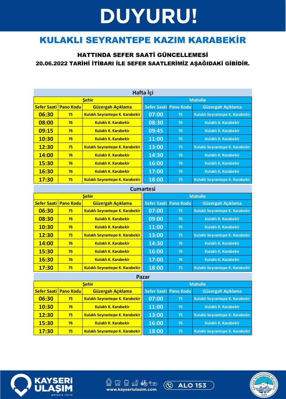 Kayseri Ulaşım A.Ş / Duyurular