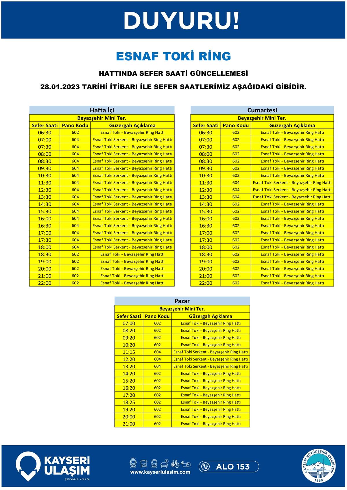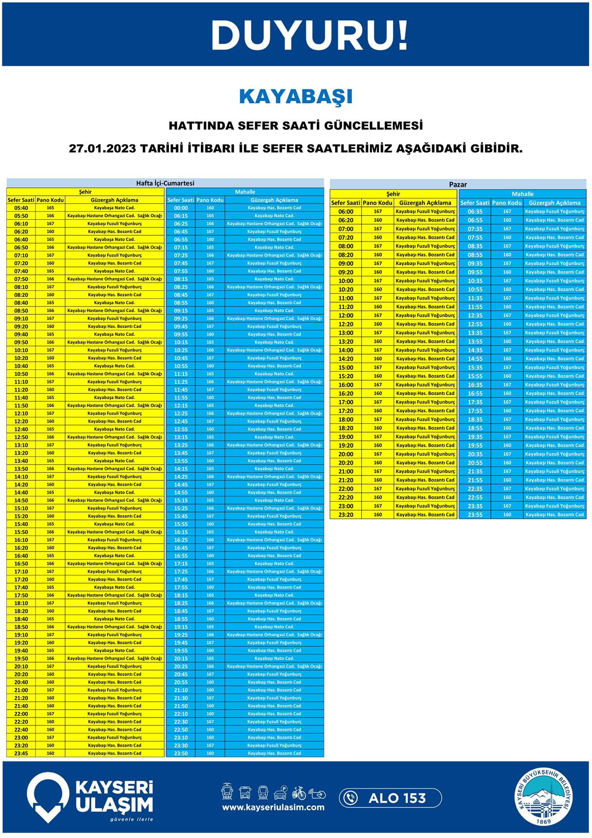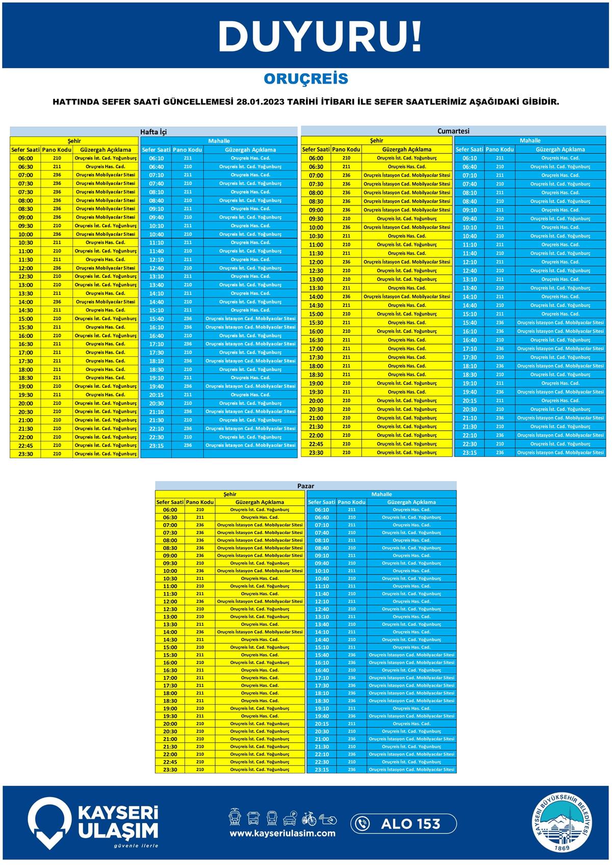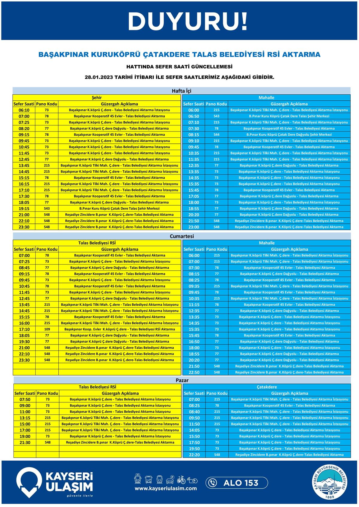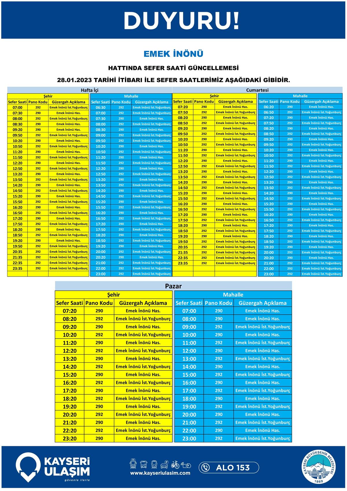 SEFER SAATLERİ GÜNCELLEMESİ TABLODAKİ GİBİDİR.