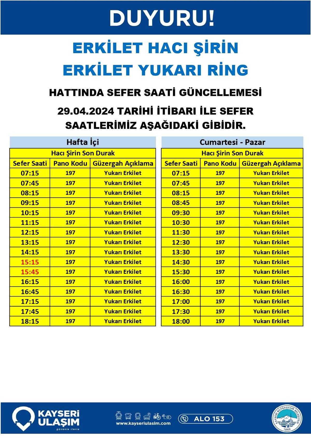 07 Şubat 2026 Tarihinden itibaren Organize Sanayi Ring hattında sefer saat güncellemesi...