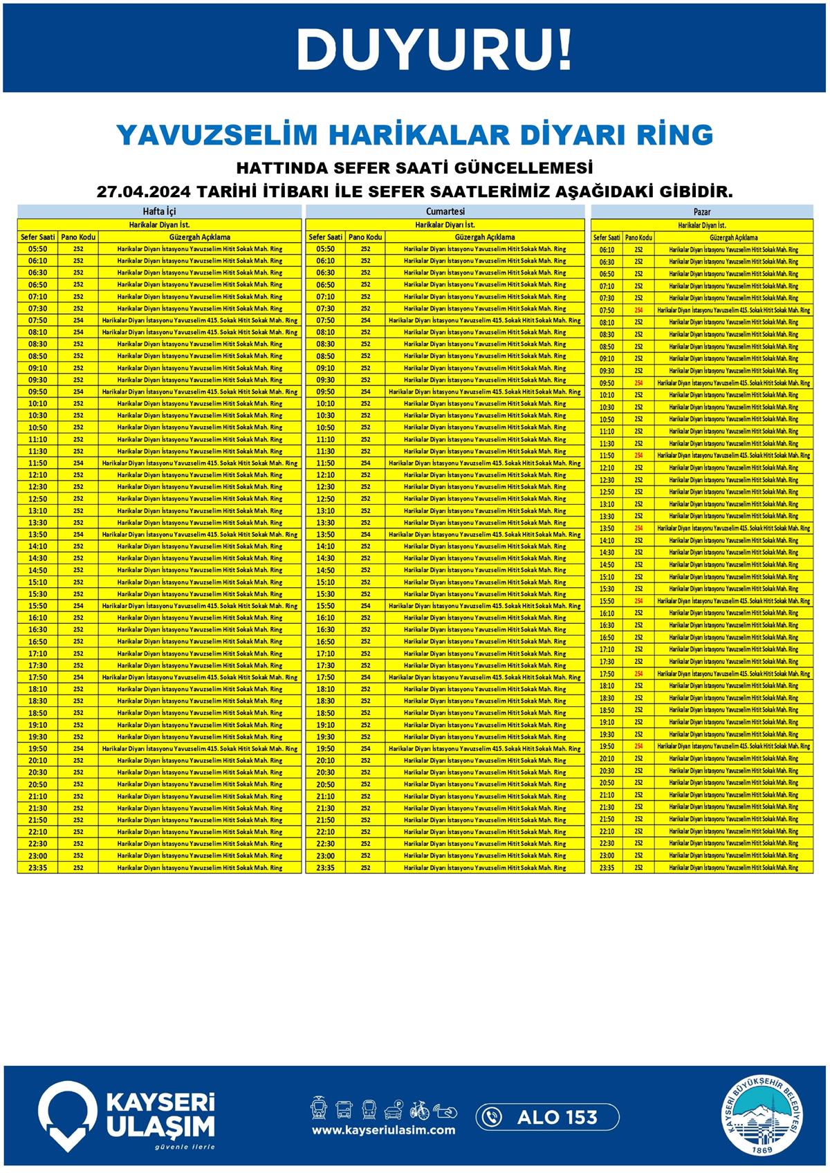 27-29 Nisan 2024 Tarihinden itibaren Bazı Sefer Saat ve Güzergah Güncellemeleri