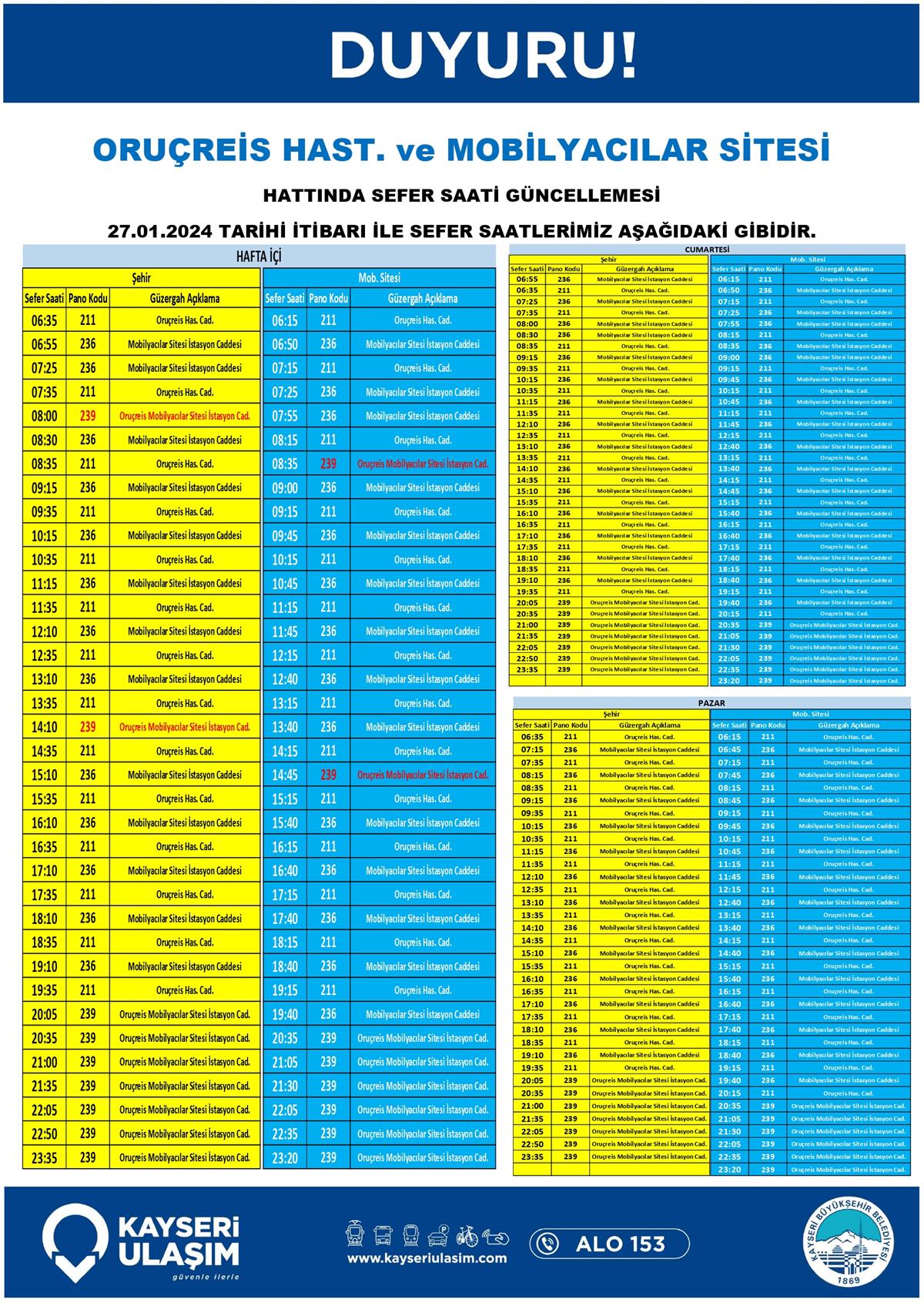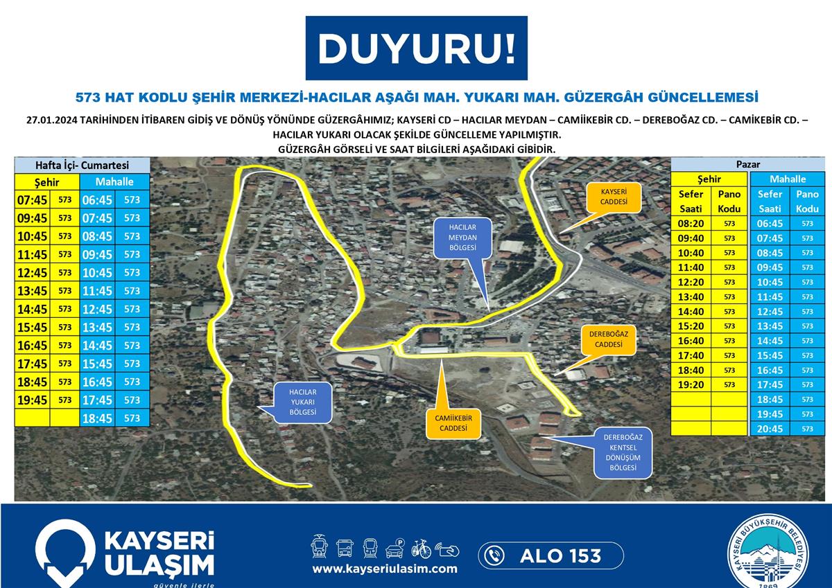 27-29 Ocak 2024 Tarihinden itibaren Bazı Sefer Saat ve Güzergah Güncellemeleri Yapılmıştır.