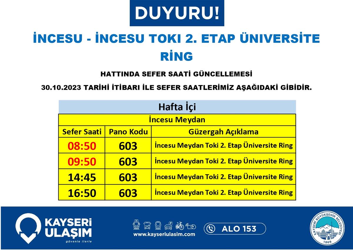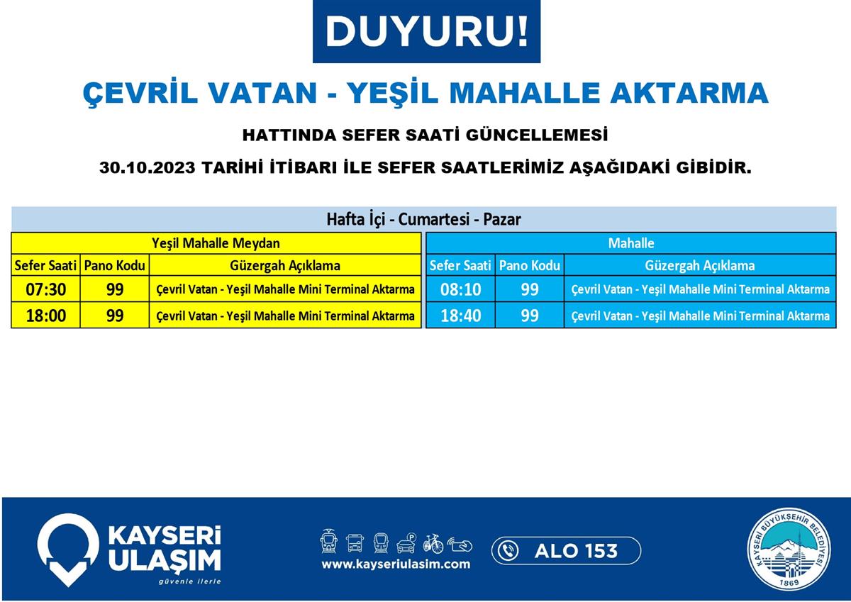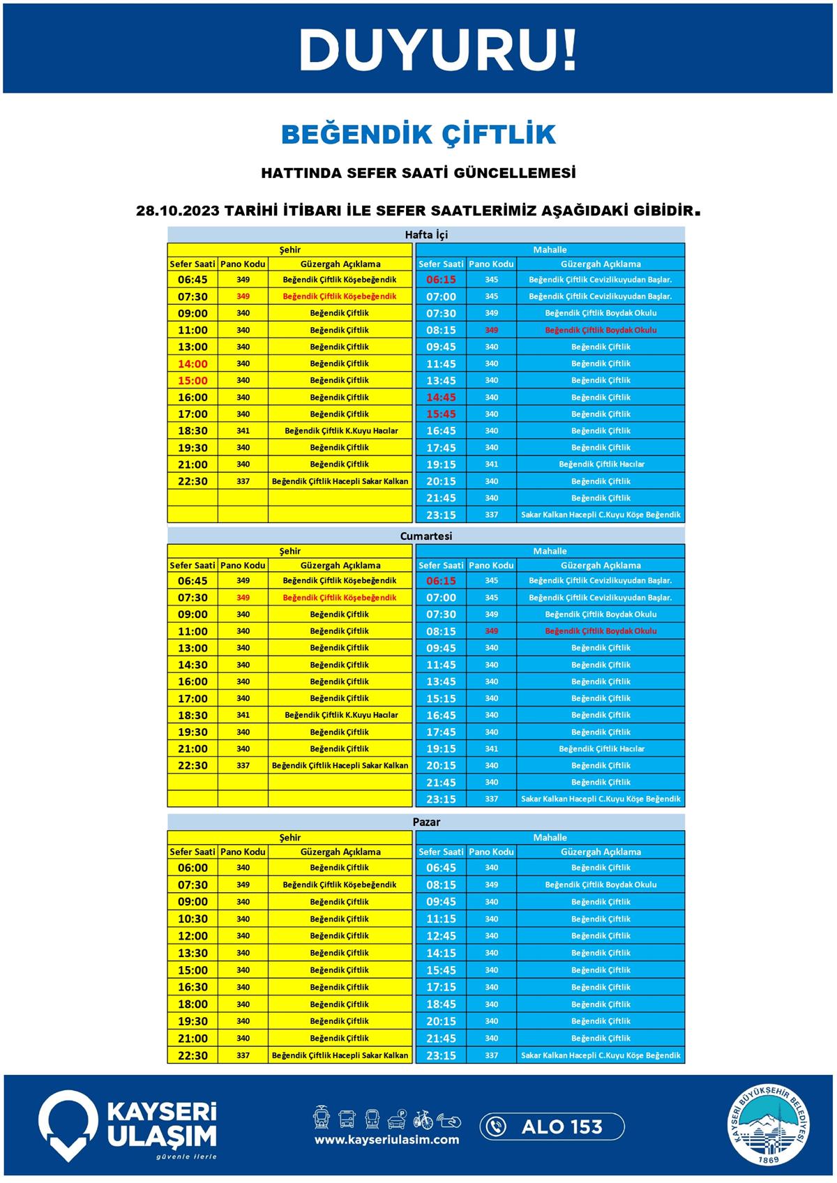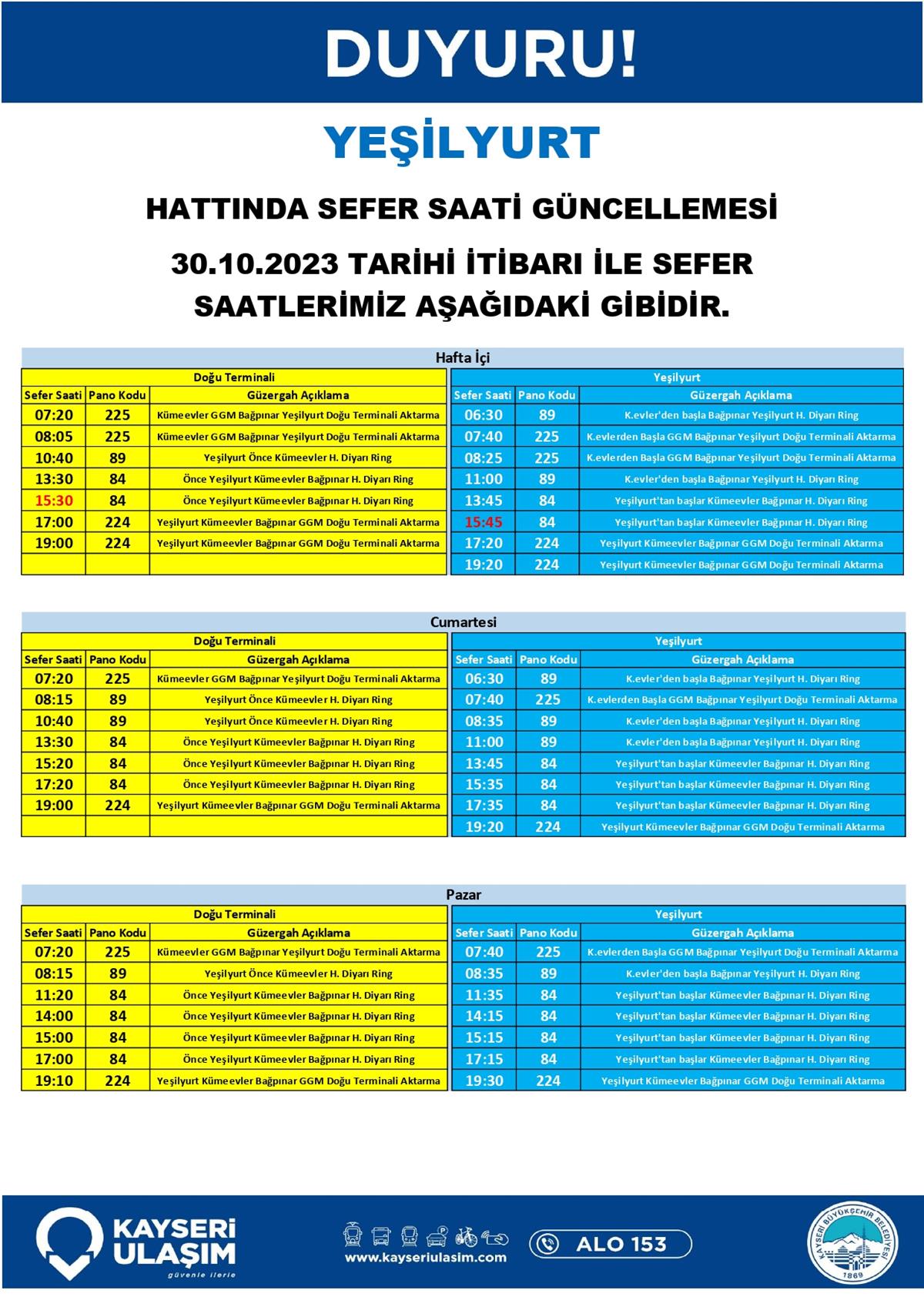 28 – 30 Ekim 2023 Tarihinden İtibaren Bazı Sefer Saat ve Güzergah Güncellemeleri Yapılmıştır