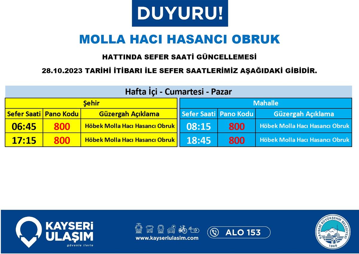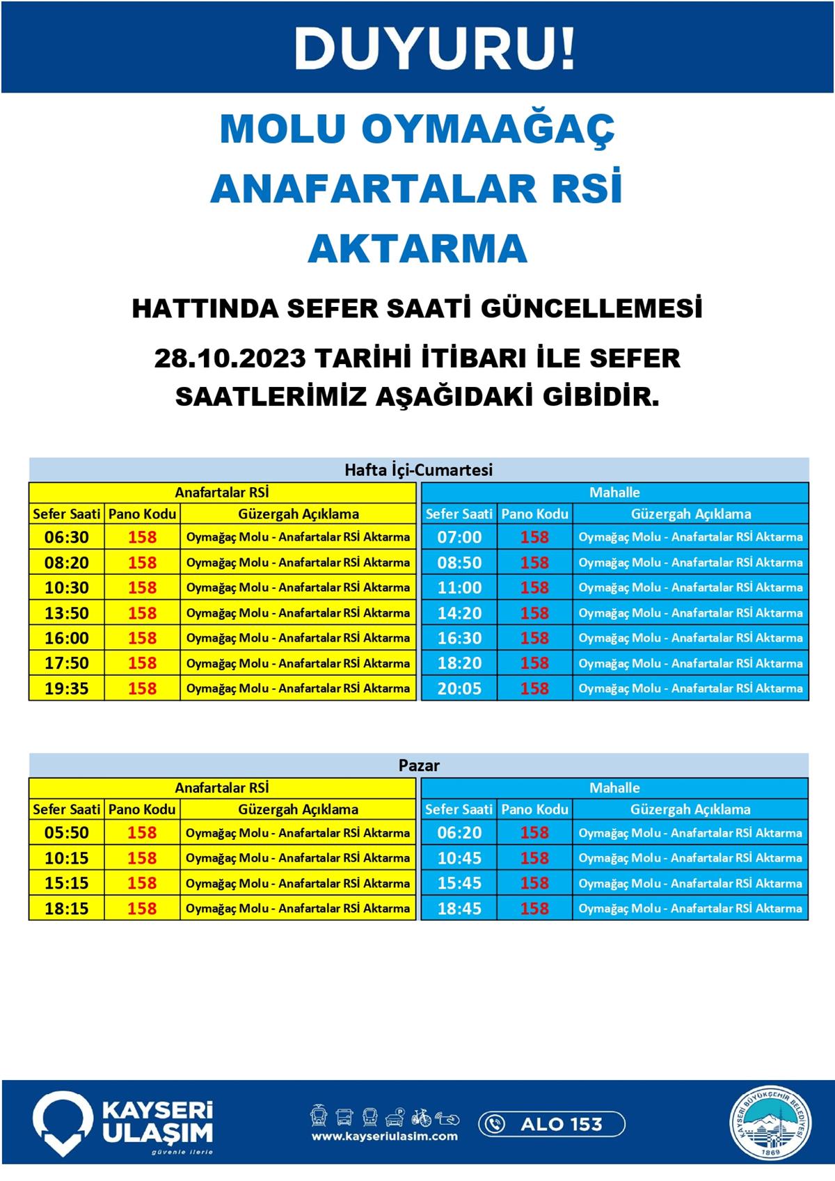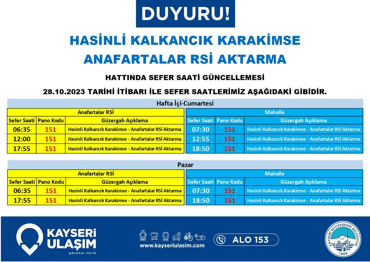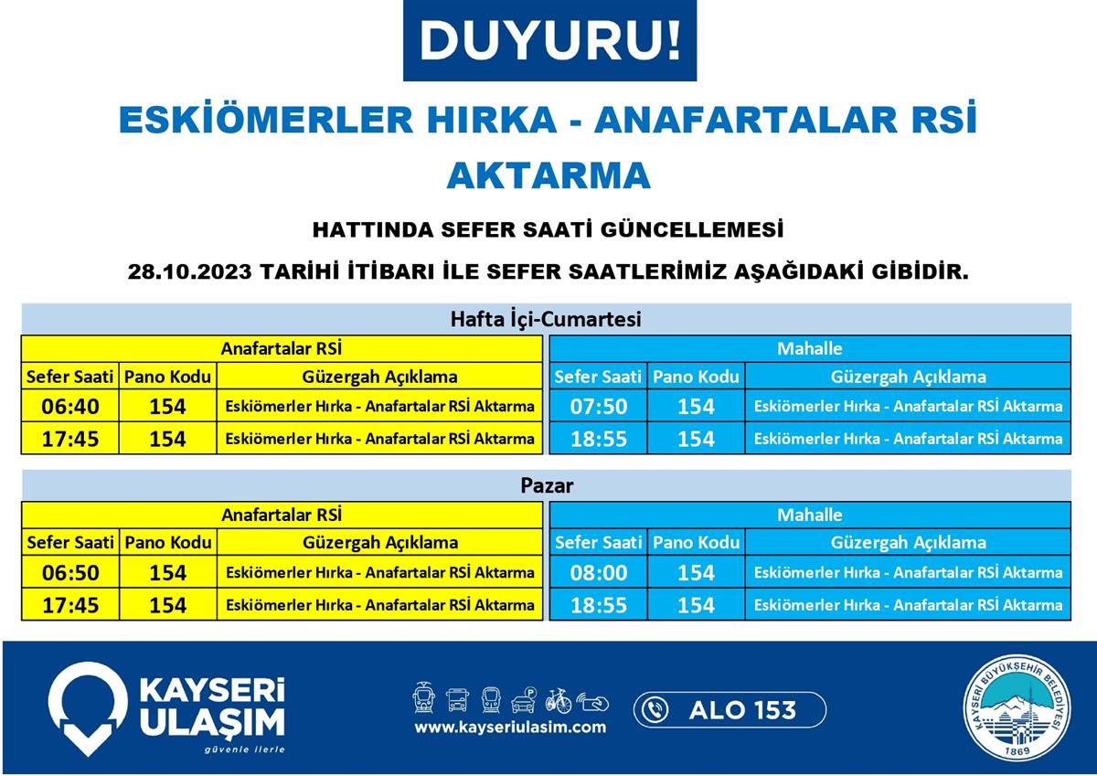 28 – 30 Ekim 2023 Tarihinden İtibaren Bazı Sefer Saat ve Güzergah Güncellemeleri Yapılmıştır