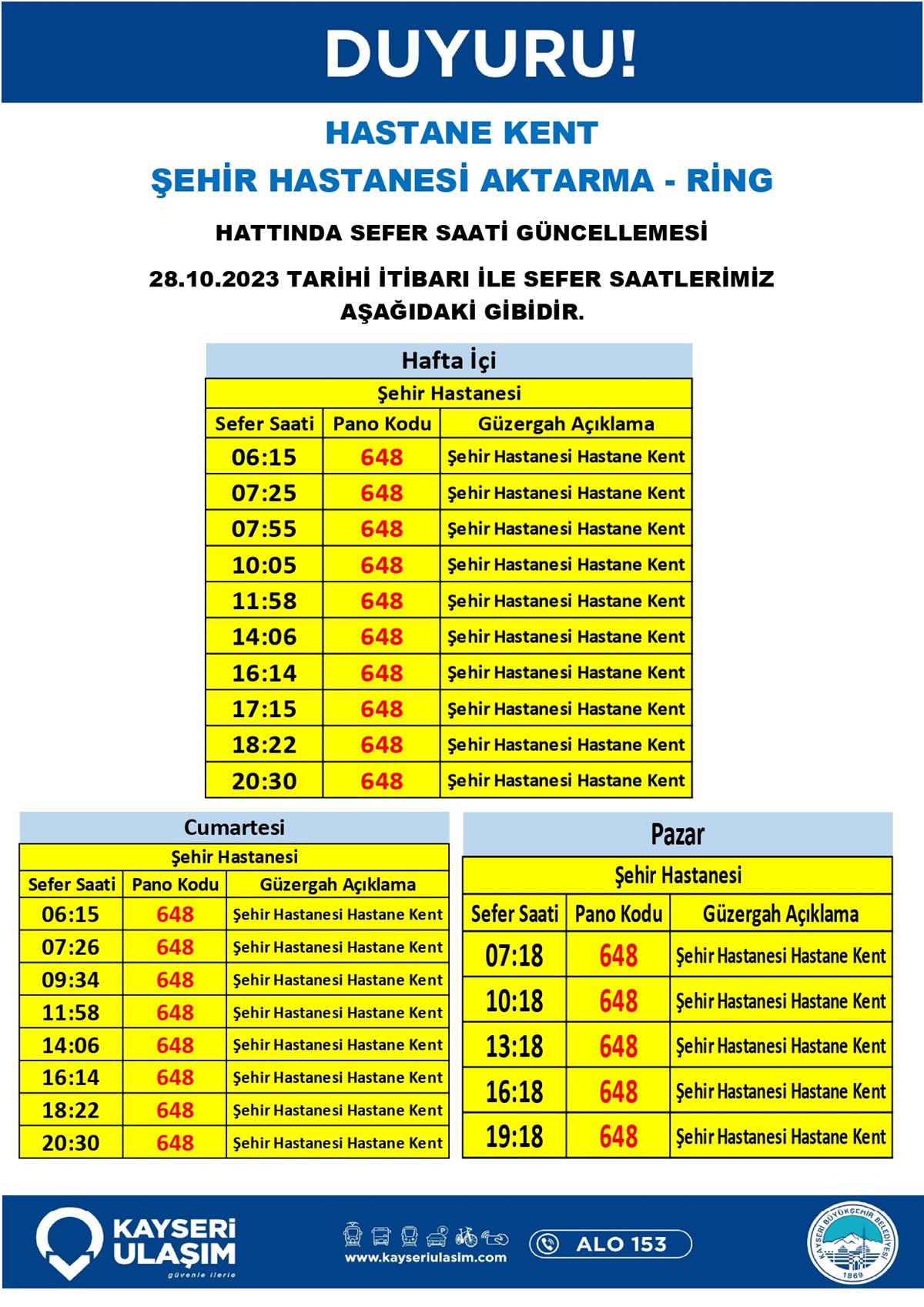 HASTANE KENT ŞEHİR HASTANESİ AKTARMA – RİNG