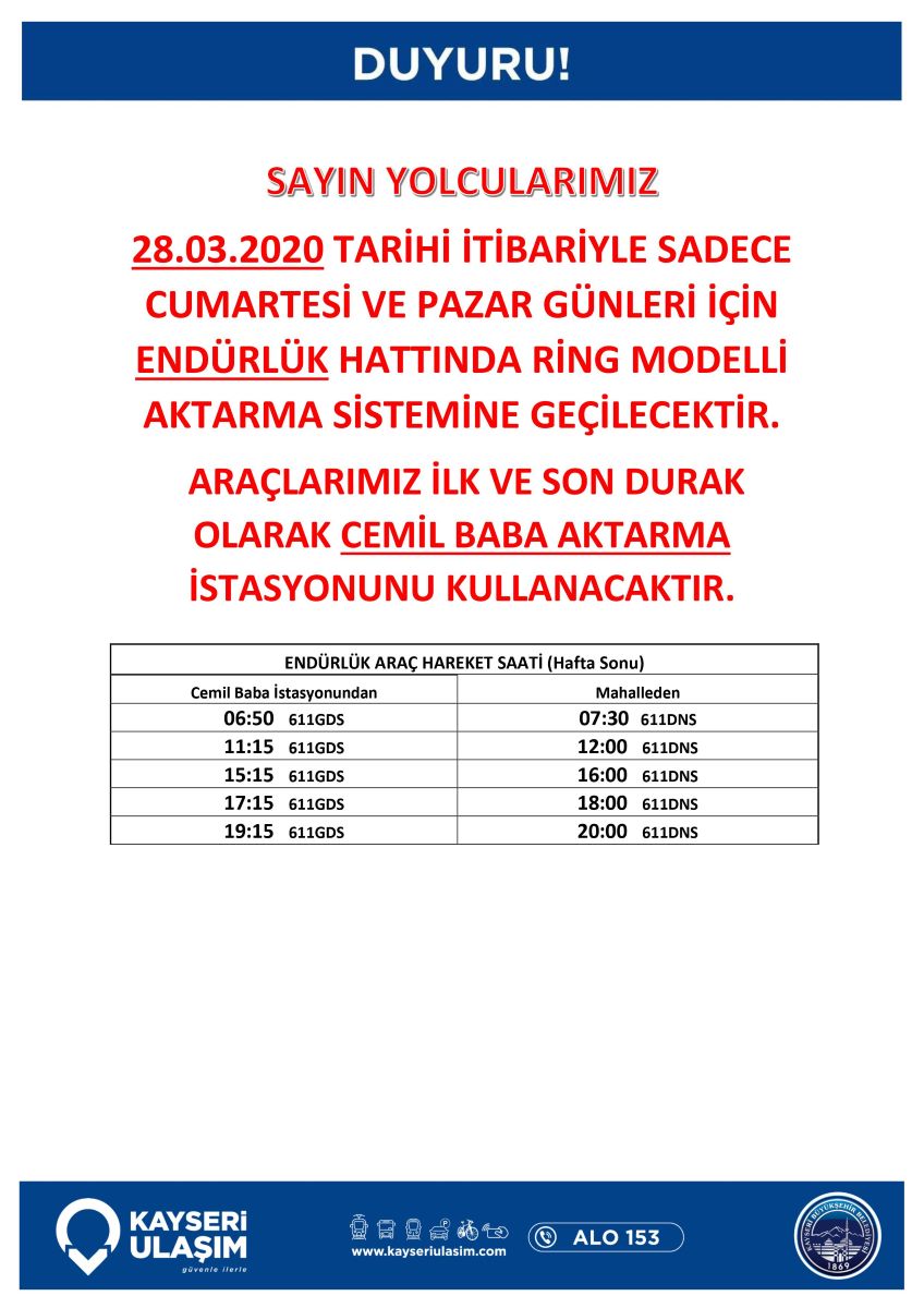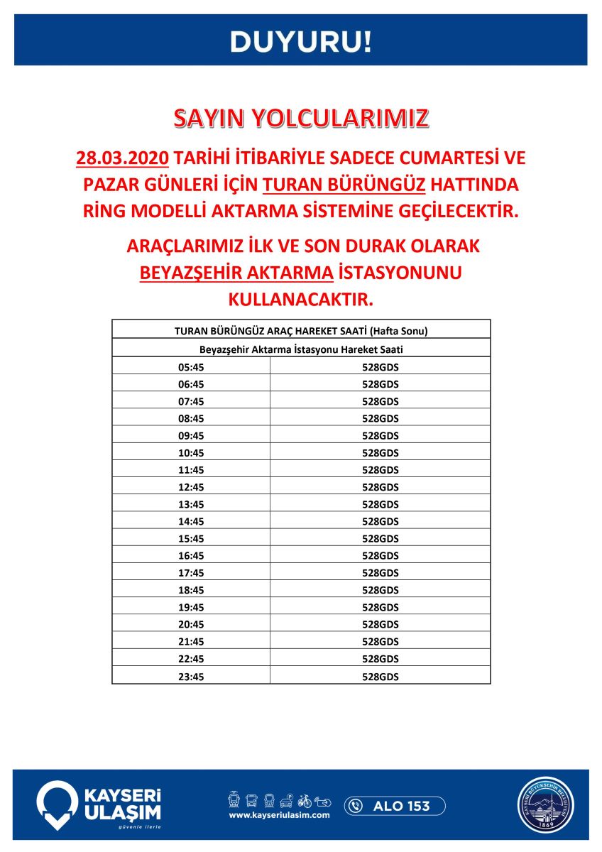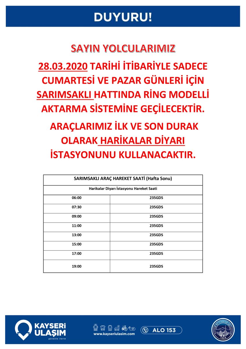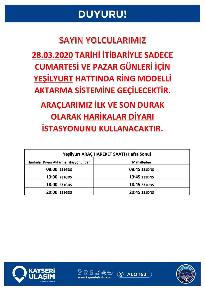 28.03.2020 TARİHİ İTİBARİYLE SADECE CUMARTESİ VE PAZAR GÜNLERİ İÇİN,