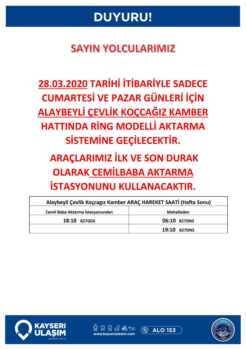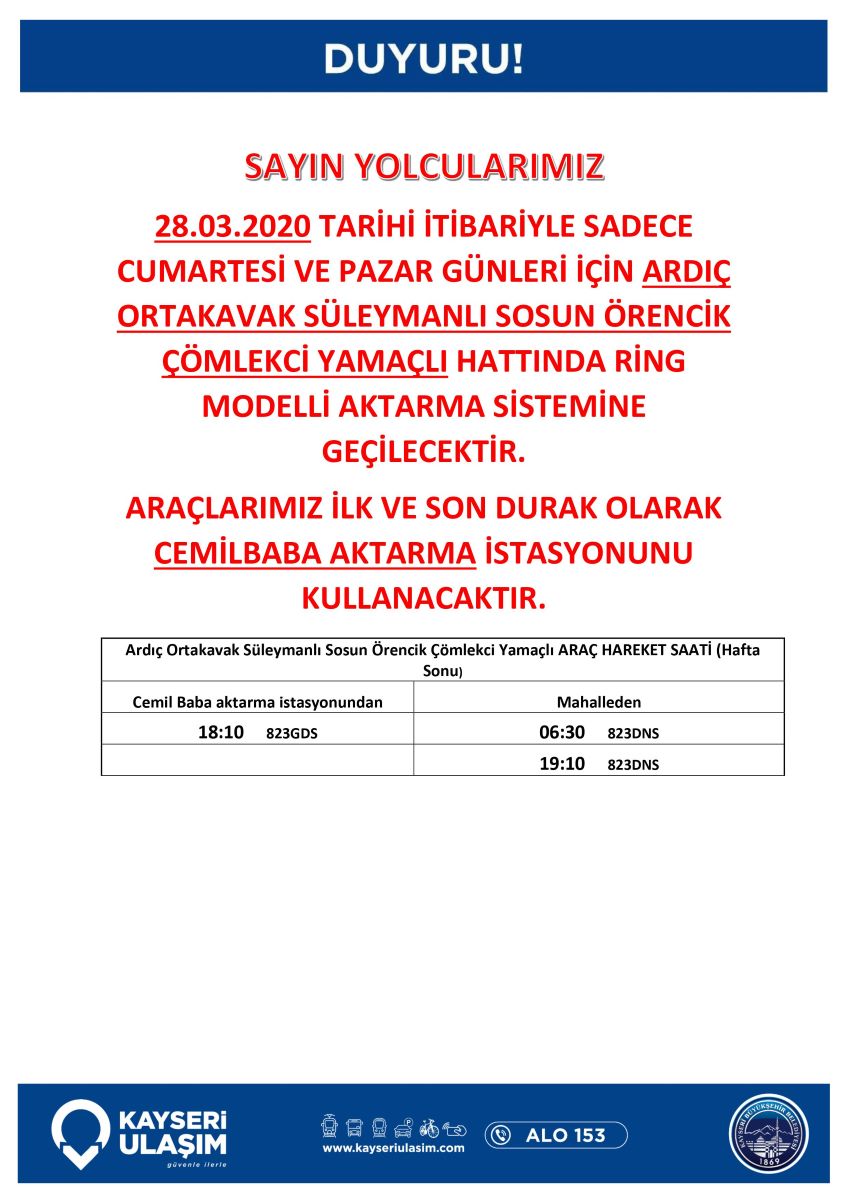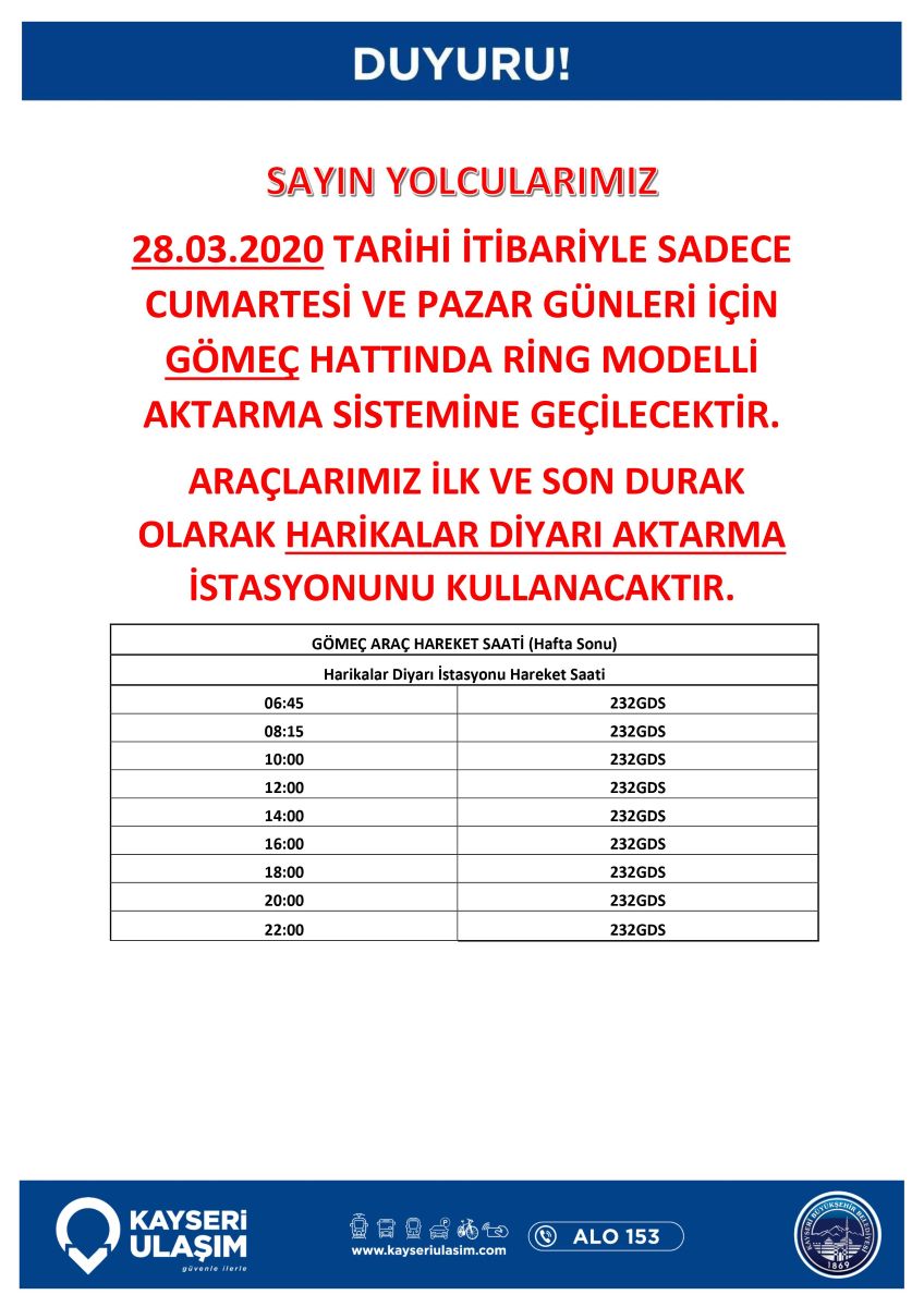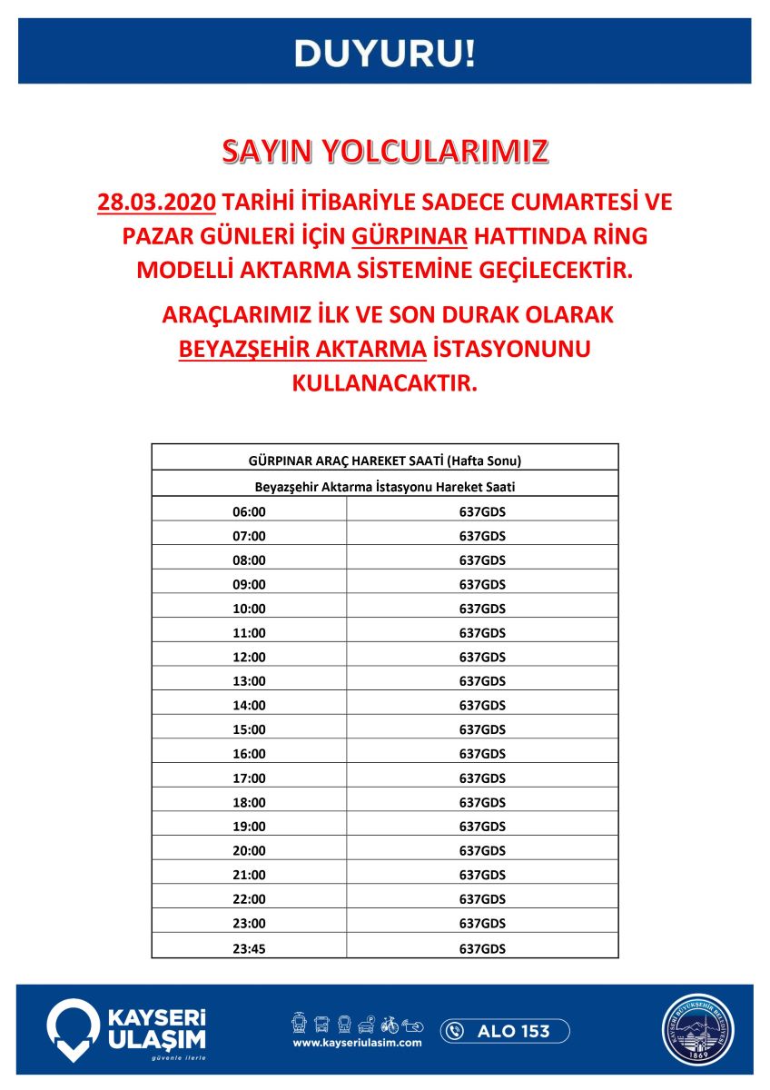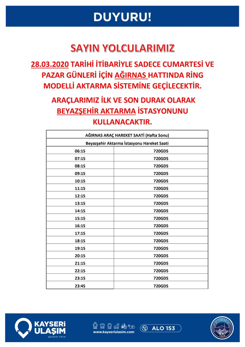 28.03.2020 TARİHİ İTİBARİYLE SADECE CUMARTESİ VE PAZAR GÜNLERİ İÇİN,