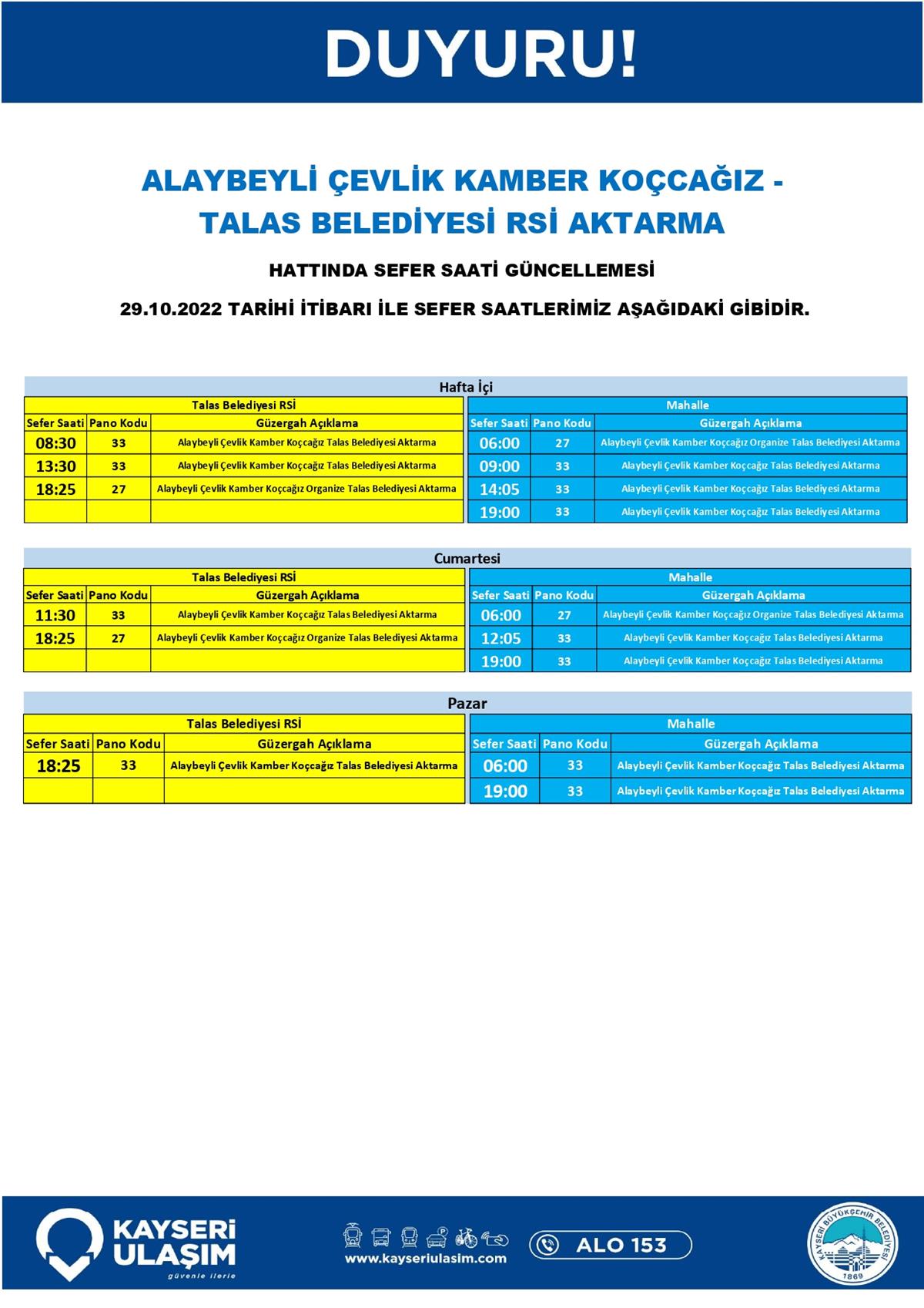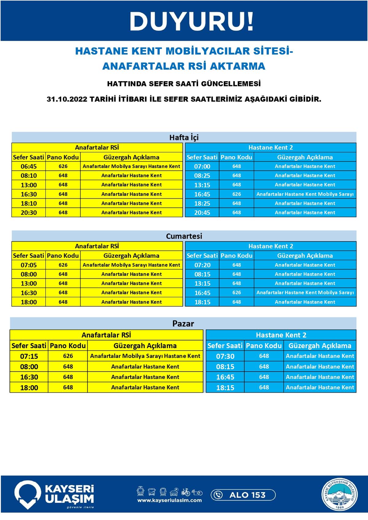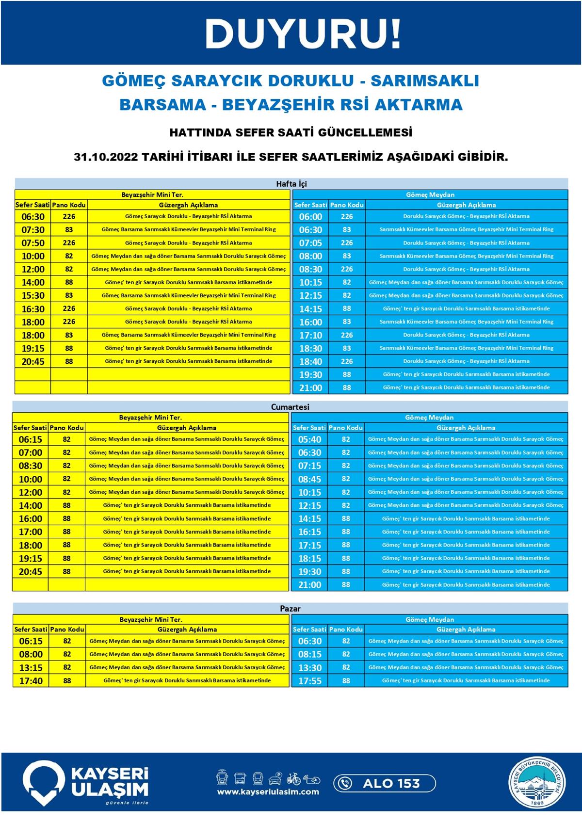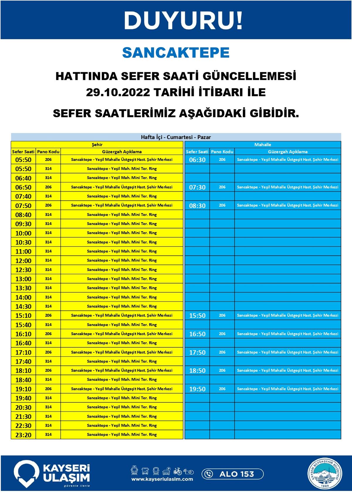 29.10.2022 Tarihinden İtibaren Değişik Yapılacak Otobüs Seferleri Duyurusu!