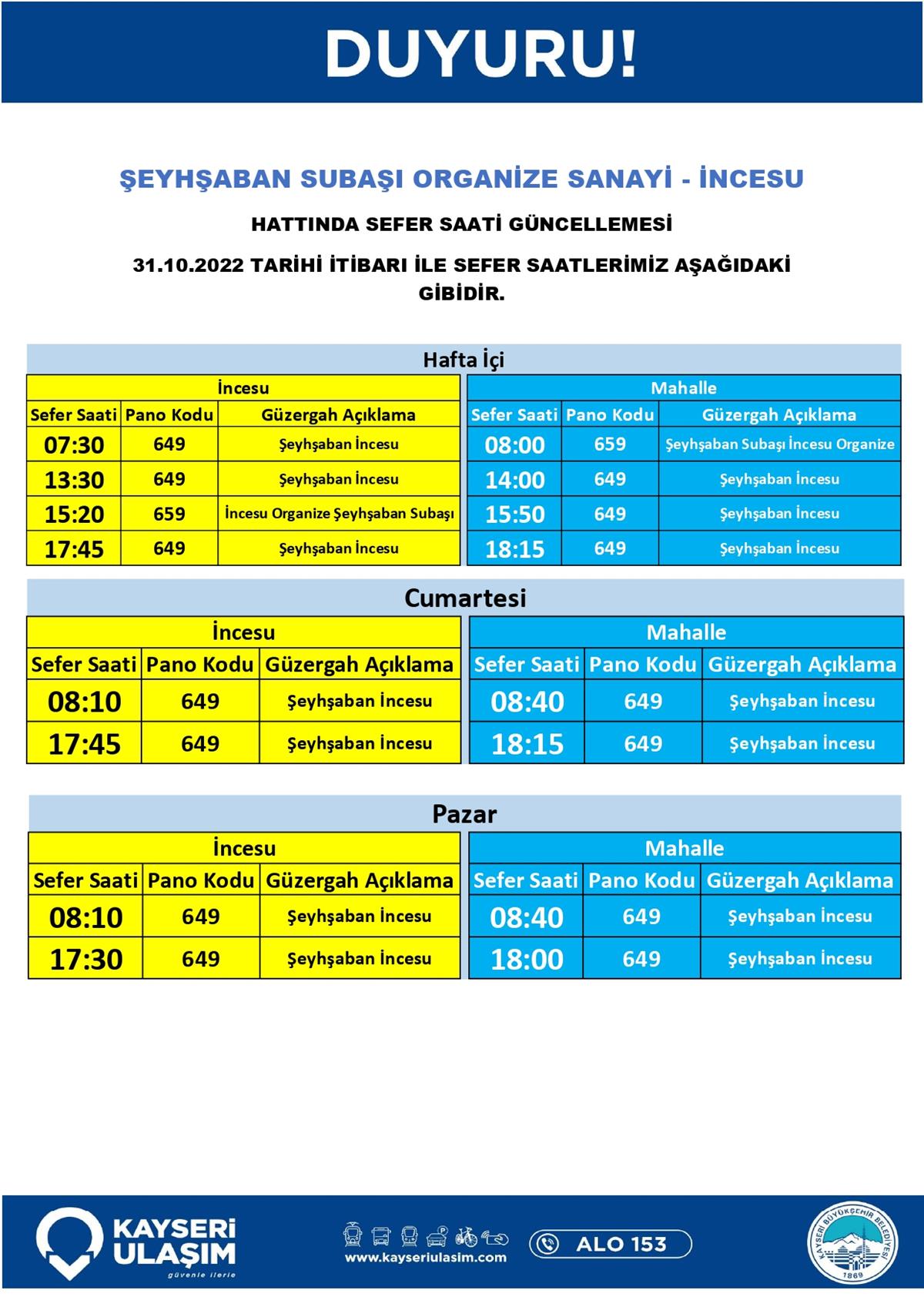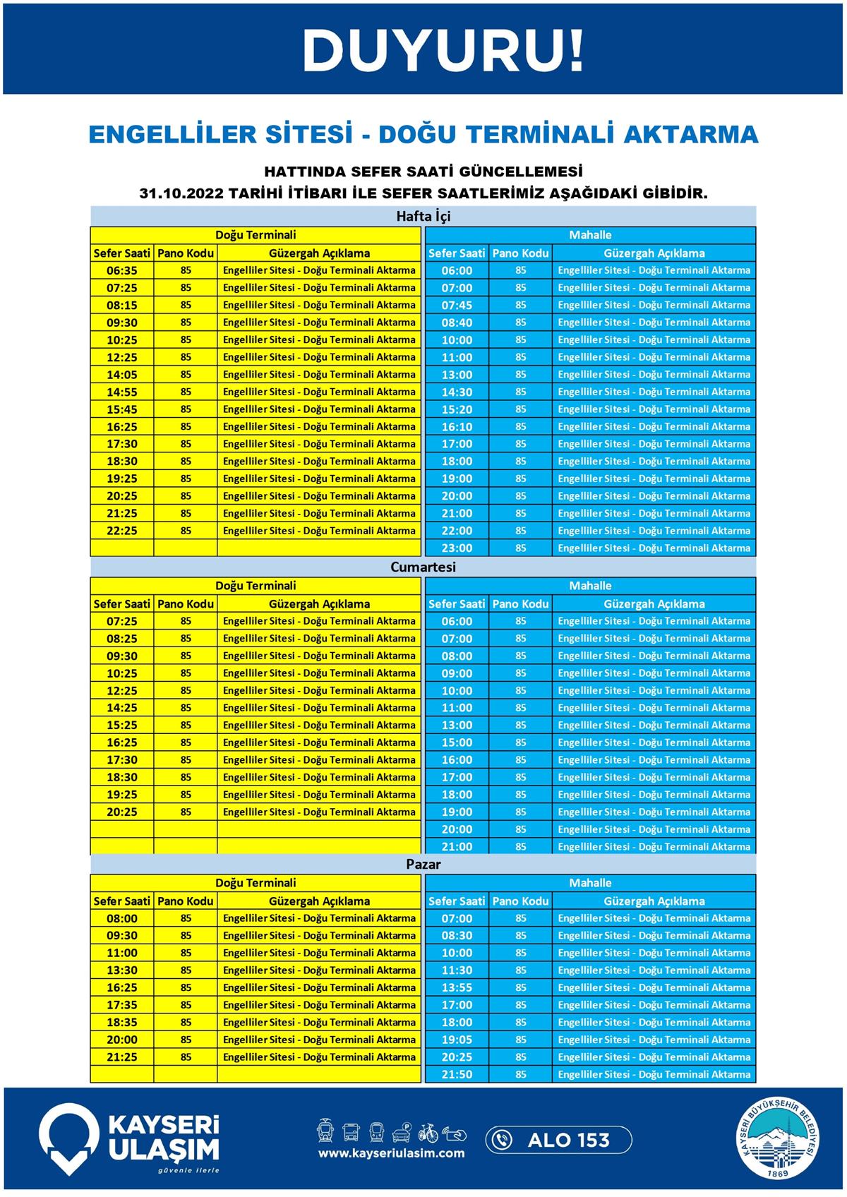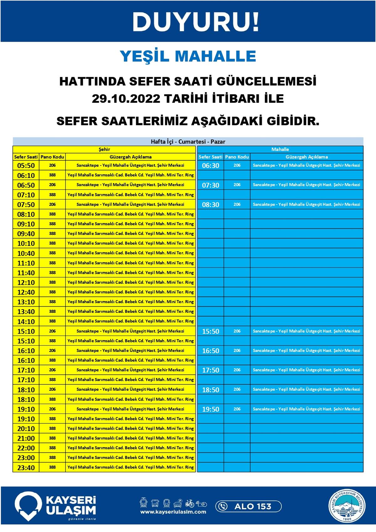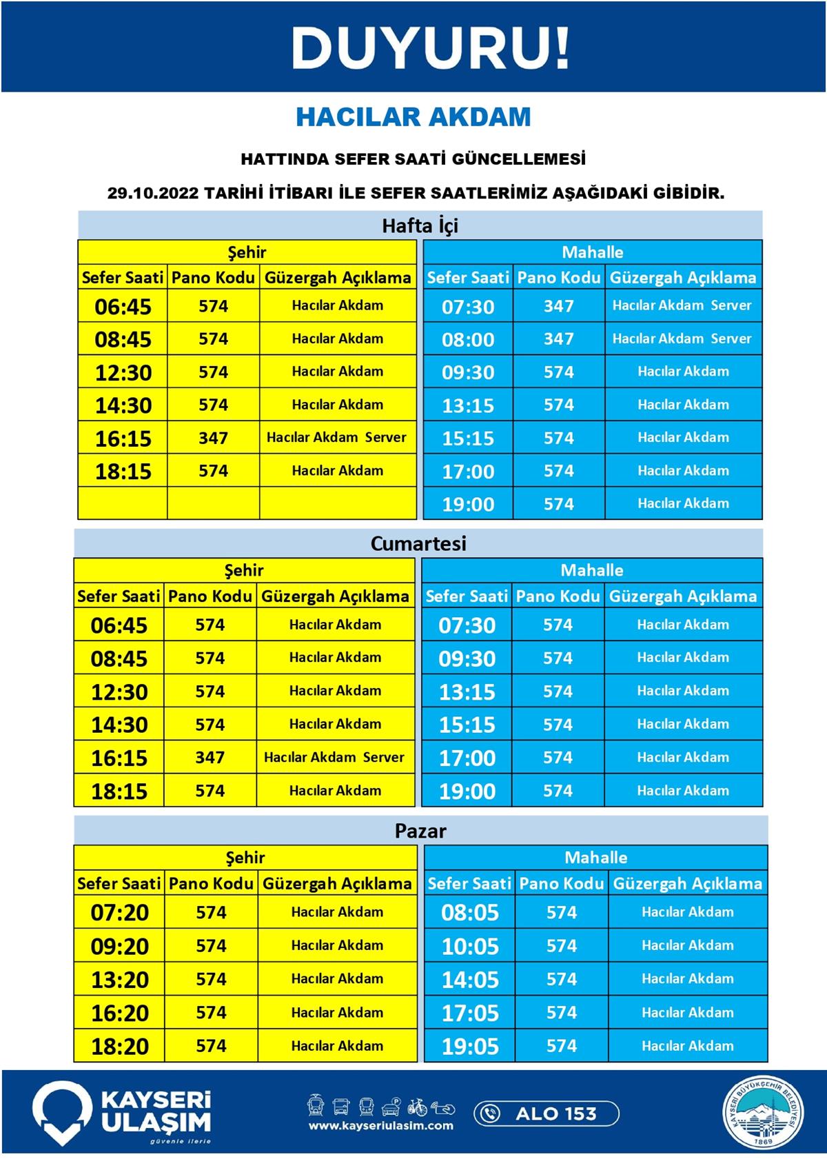 29.10.2022 Tarihinden İtibaren Değişik Yapılacak Otobüs Seferleri Duyurusu!