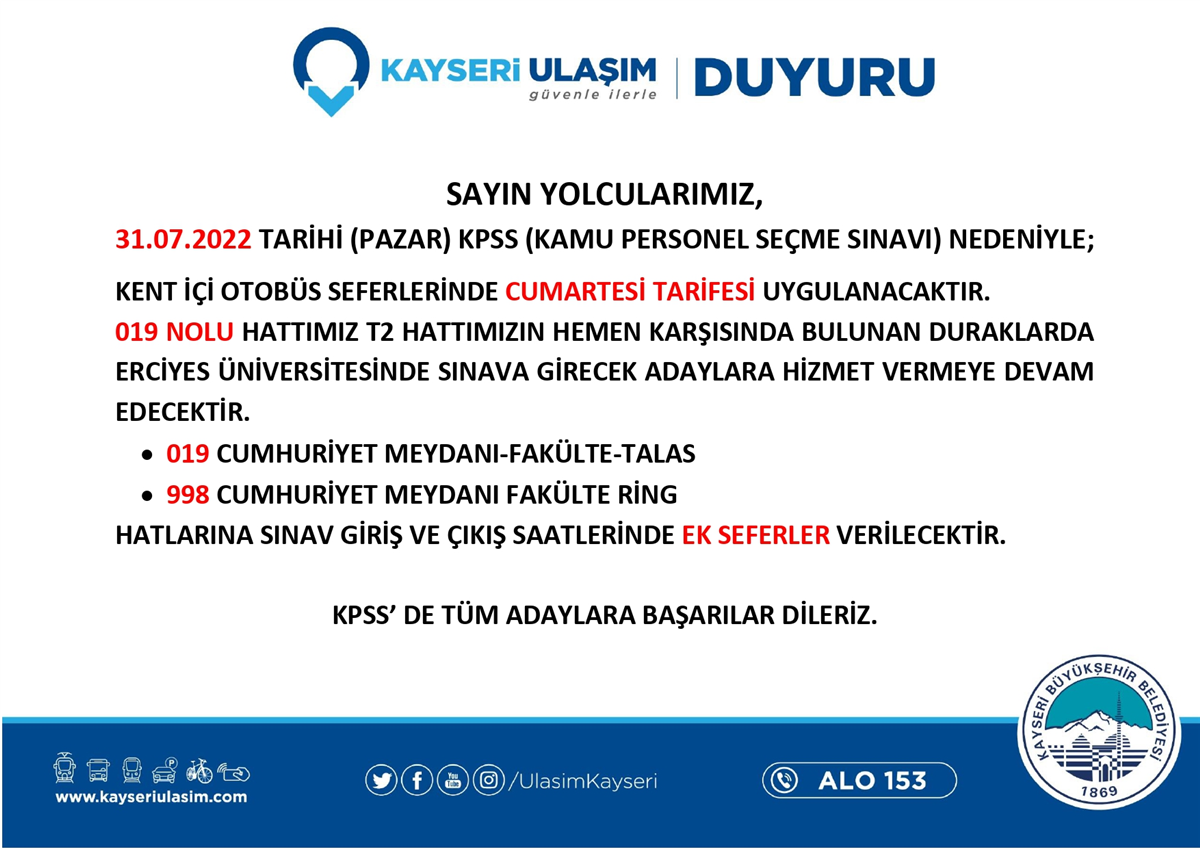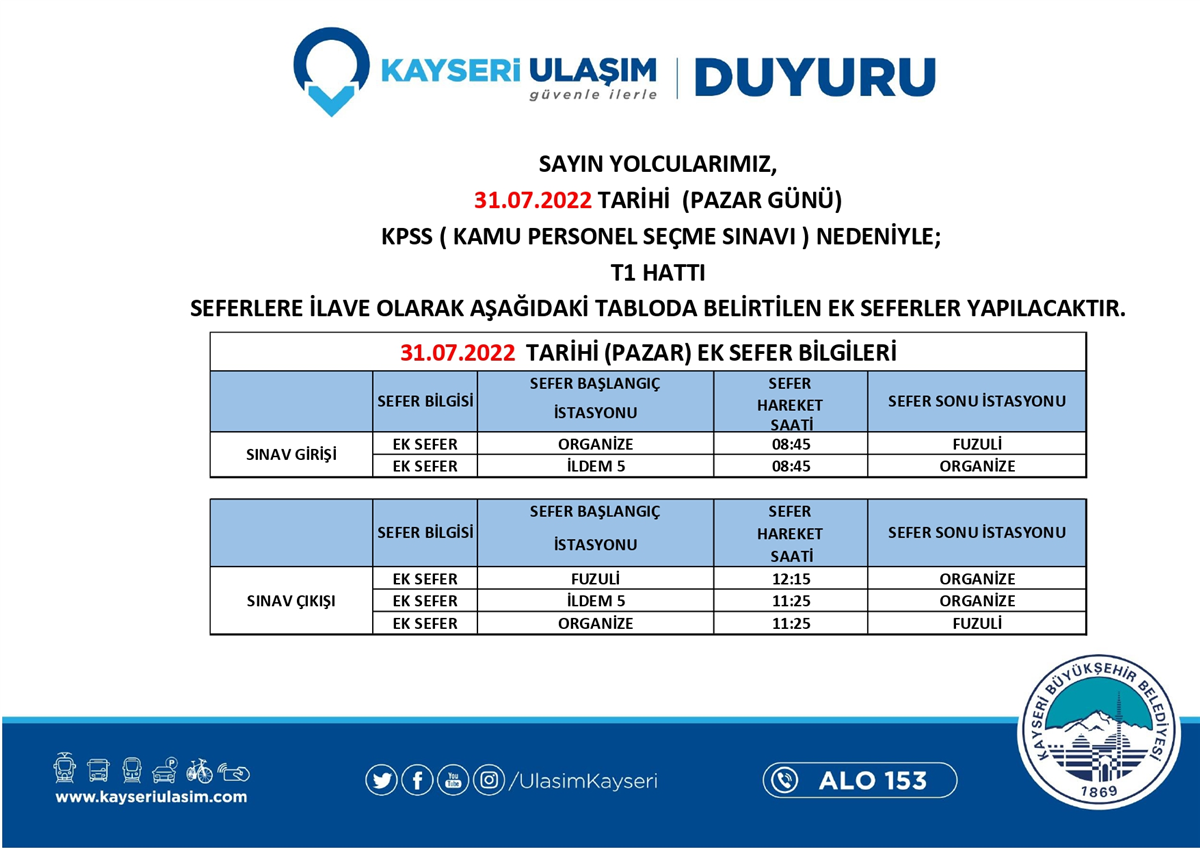 31.07.2022 Pazar Günü uygulanacak tarife ve ek sefer bilgilerine aşağıdaki görsellerden erişebilirsiniz.