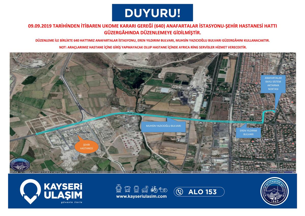 640 Anafartalar-Şehir Hastanesi Hattı Güzergah Değişikliği Hakkında Duyuru!