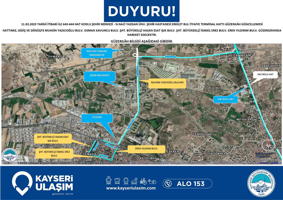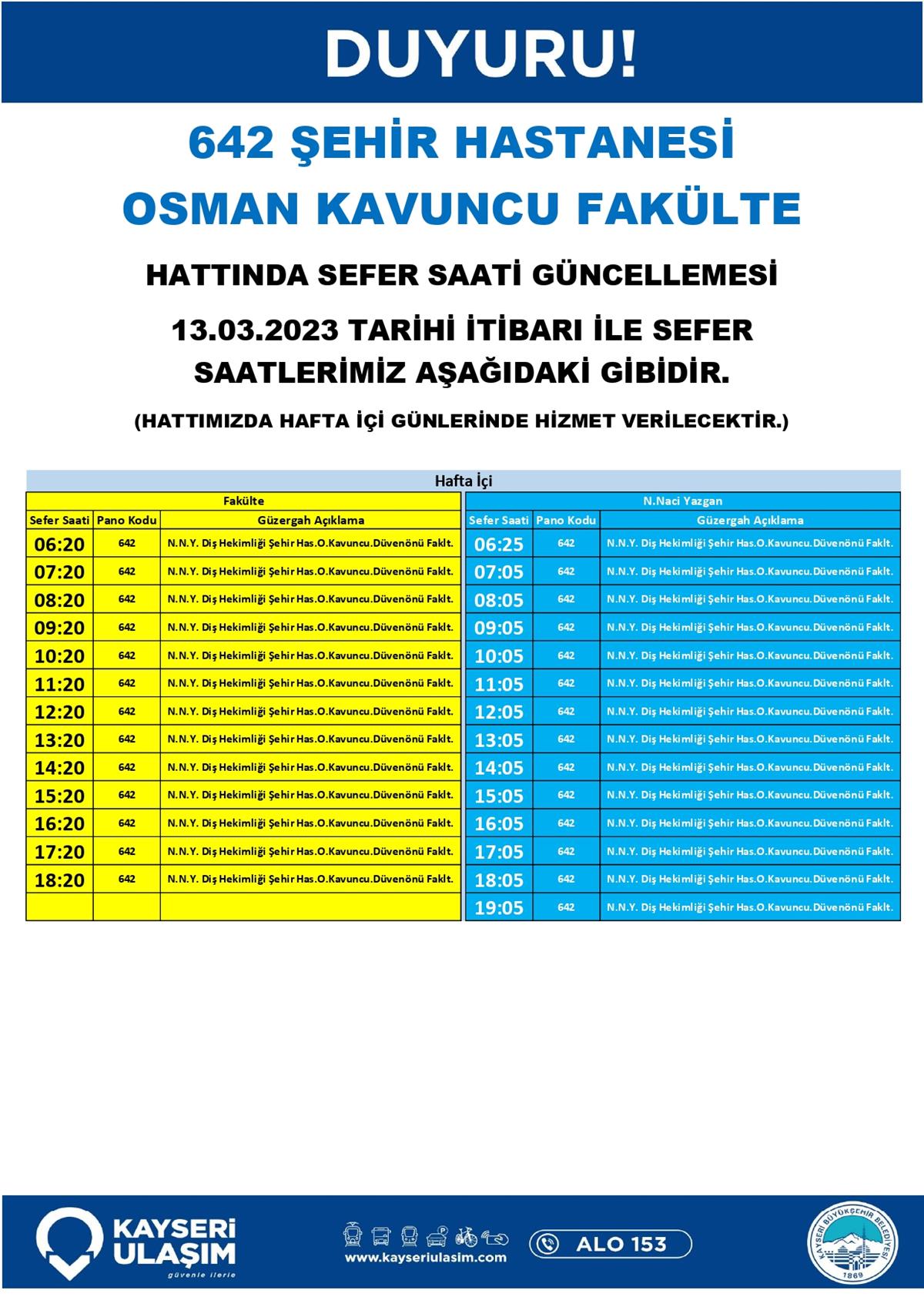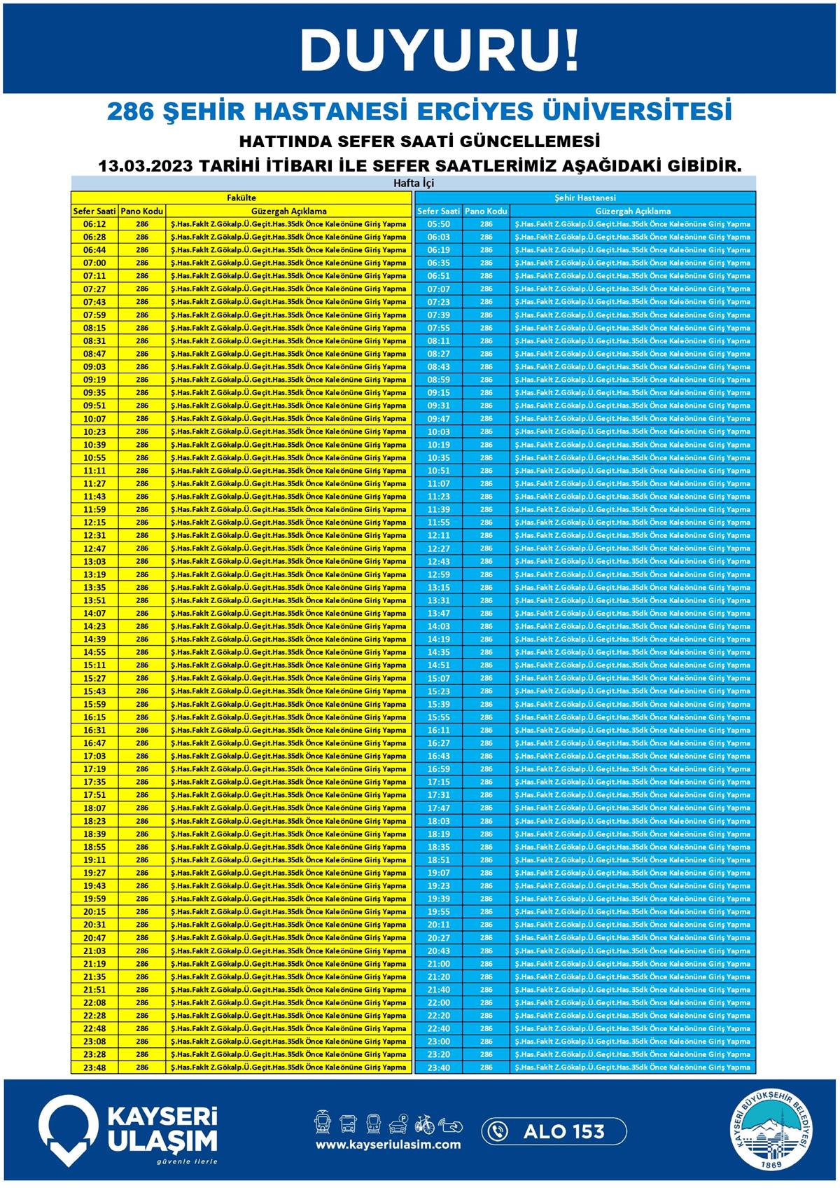 Şehir Hastanesi Hattına Giden Bazı Seferlerde Saat ve Güzergah Güncellemesi
