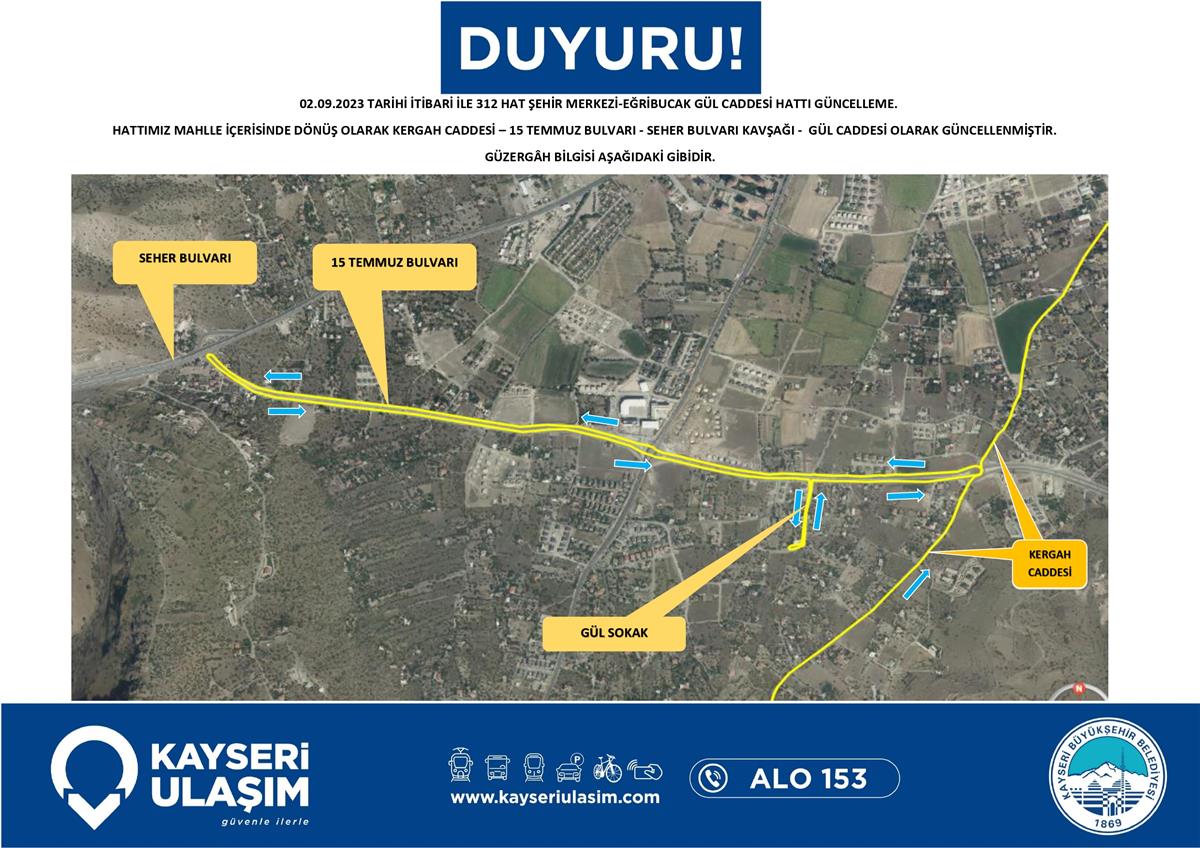 02.09.2023 TARİHİ İTİBARİ İLE 312 HAT ŞEHİR MERKEZİ-EĞRİBUCAK GÜL CADDESİ HATTI GÜNCELLEME YAPILMIŞTIR.