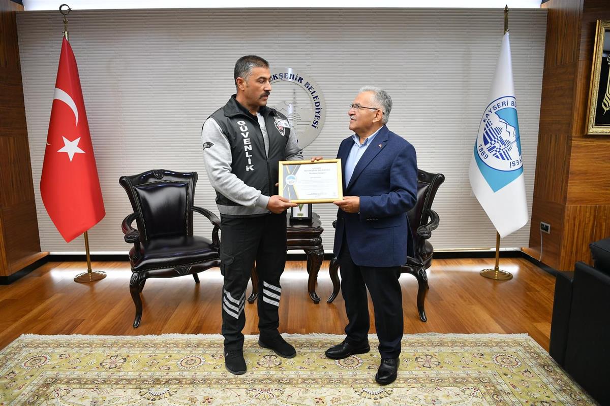 Güvenlik görevlisi Ayhan Akış da Başkan Büyükkılıç’a teşekkürlerini iletirken ziyarette, Büyükşehir Belediyesi Basın Yayın ve Halkla İlişkiler Daire Başkanı Cenani Ayaydın, Ulaşım A.Ş. Genel Müdür Yardımcısı Mehmet Akif Erdoğan ile KASKİ Genel Müdürü Yavuz Çağan hazır bulundu.