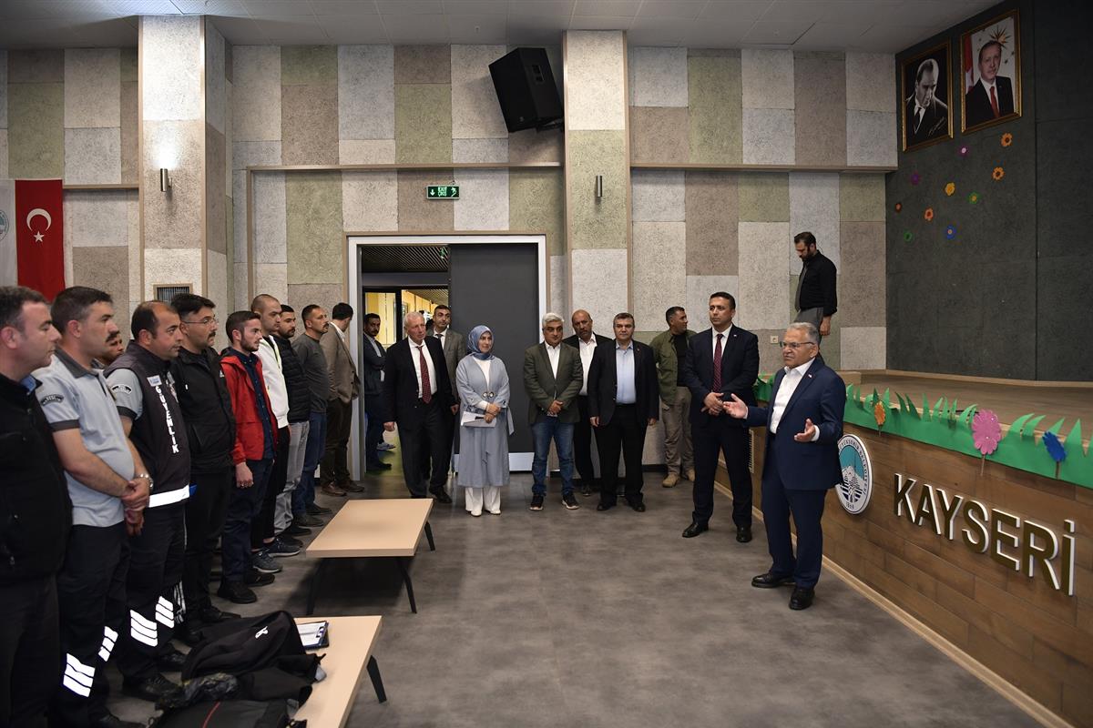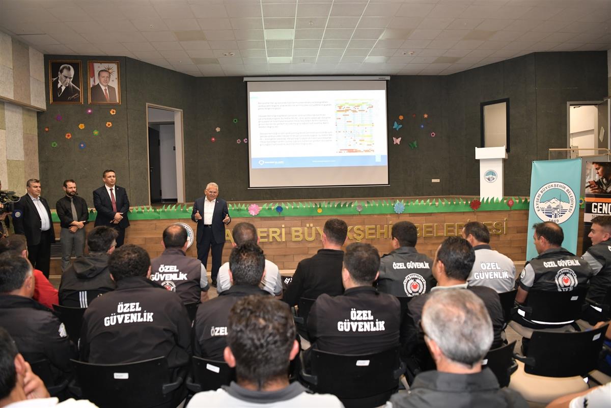 Kayseri Büyükşehir Belediye Başkanı Dr. Memduh Büyükkılıç, Büyükşehir Belediyesi Ulaşım A.Ş. tarafından şoför, makinist, parkomat, güvenlik görevlisi, peron görevlisi ve gişe görevlilerine yönelik düzenlenen eğitim seminerine katılarak, personelle bir araya geldi.