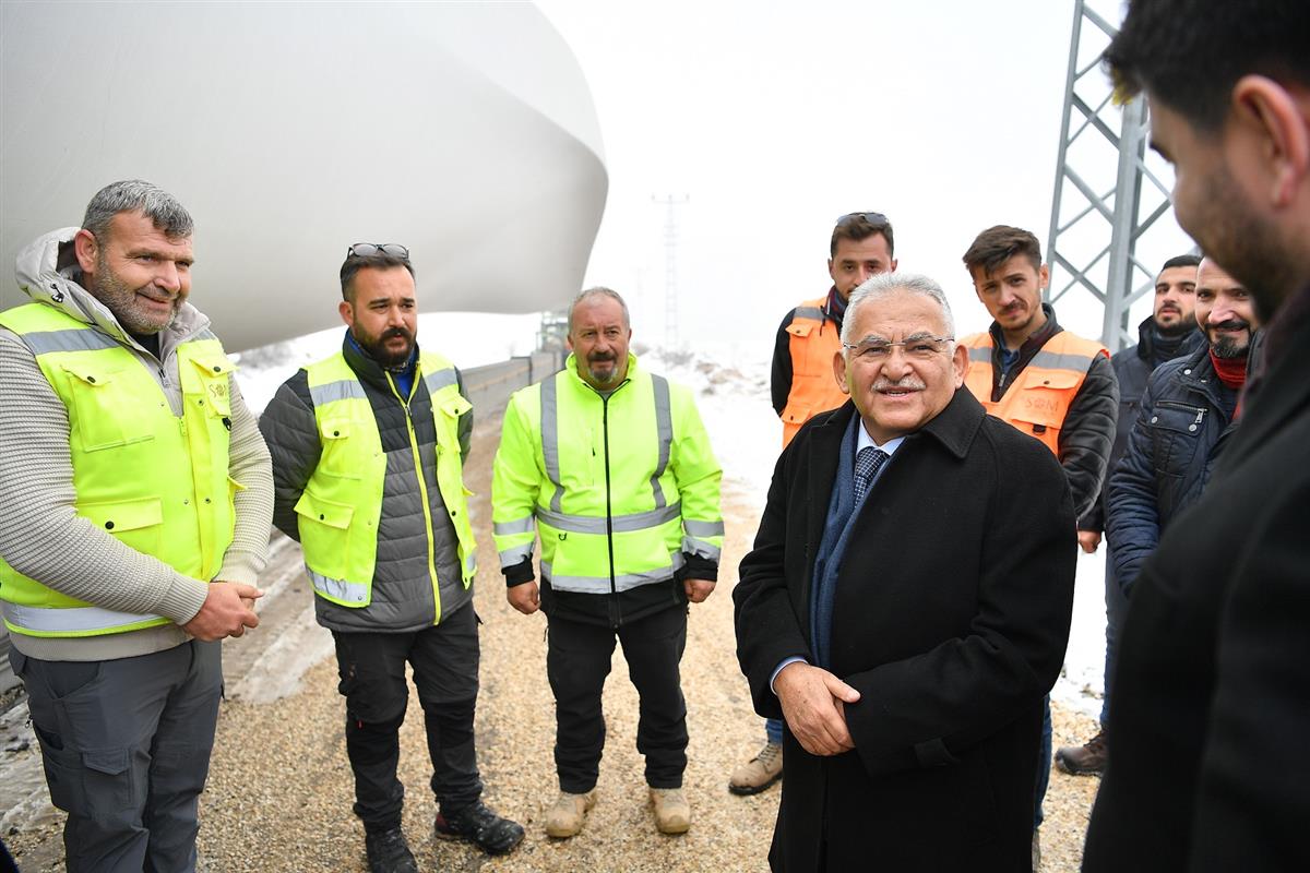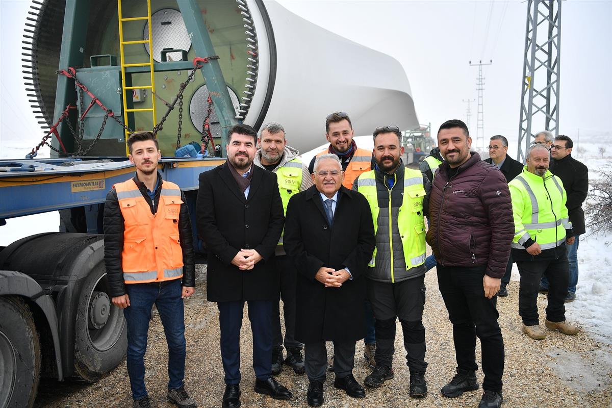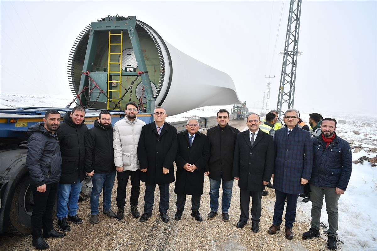 Kayseri Büyükşehir Belediye Başkanı Dr. Memduh Büyükkılıç, Yıllık 60 milyon kilovat/saat elektrik elde edilecek olan ve Türkiye’nin toplu ulaşım sektöründeki ilk rüzgâr enerji santrali (RES) projesinin kente ulaşan türbinlere ait kanatlarını yerinde inceledi. Başkan Büyükkılıç, “Kayseri Büyükşehir Belediyesi her zaman ilklere imza atmıştır, bu tür projeyi hayata geçiren başka belediye yok. Bu da bize yakışır” dedi.