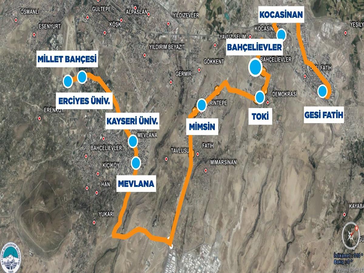 Kayseri Büyükşehir Belediyesi Kayseri Ulaşım A.Ş., İldem’den başlayarak Beyazşehir, Bahçelievler, Toki, Şirintepe mahalleleri ile Kayseri ve Erciyes Üniversitelerinden geçerek Recep Tayyip Erdoğan Millet Bahçesi'ne ulaşan yeni çevresel otobüs hattını faaliyete geçirerek, vatandaşların hizmetine sunuyor.