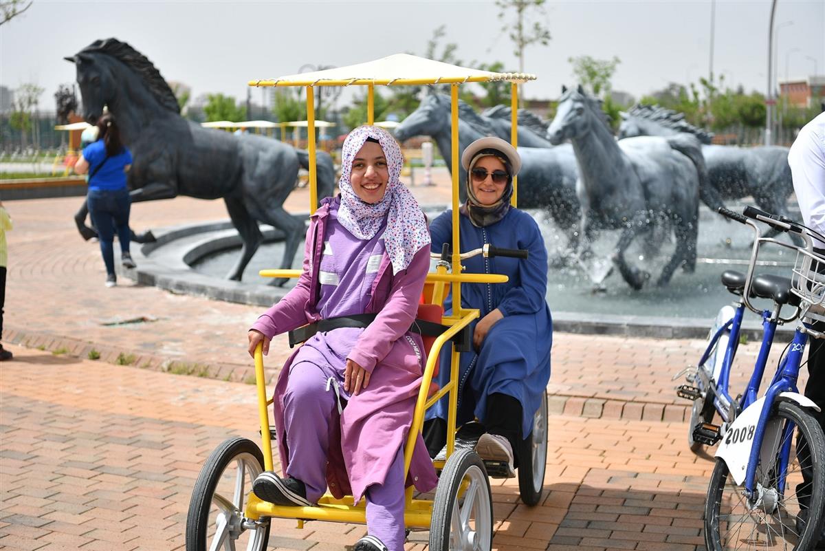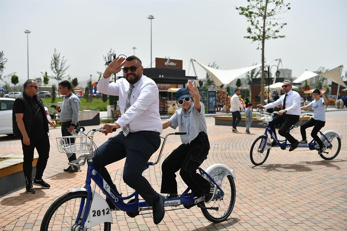 Recep Tayyip Erdoğan Millet Bahçesi’nde gerçekleştirilen etkinlikte, KAYBİS sistemiyle tandem bisikletlere binen gönüllü şoförler ve görme engelli bireyler birlikte pedal çevirdi. İlk kez bisiklet deneyimi yaşayan özel vatandaşlar hem heyecanlı hem de duygu dolu anlar yaşadı.