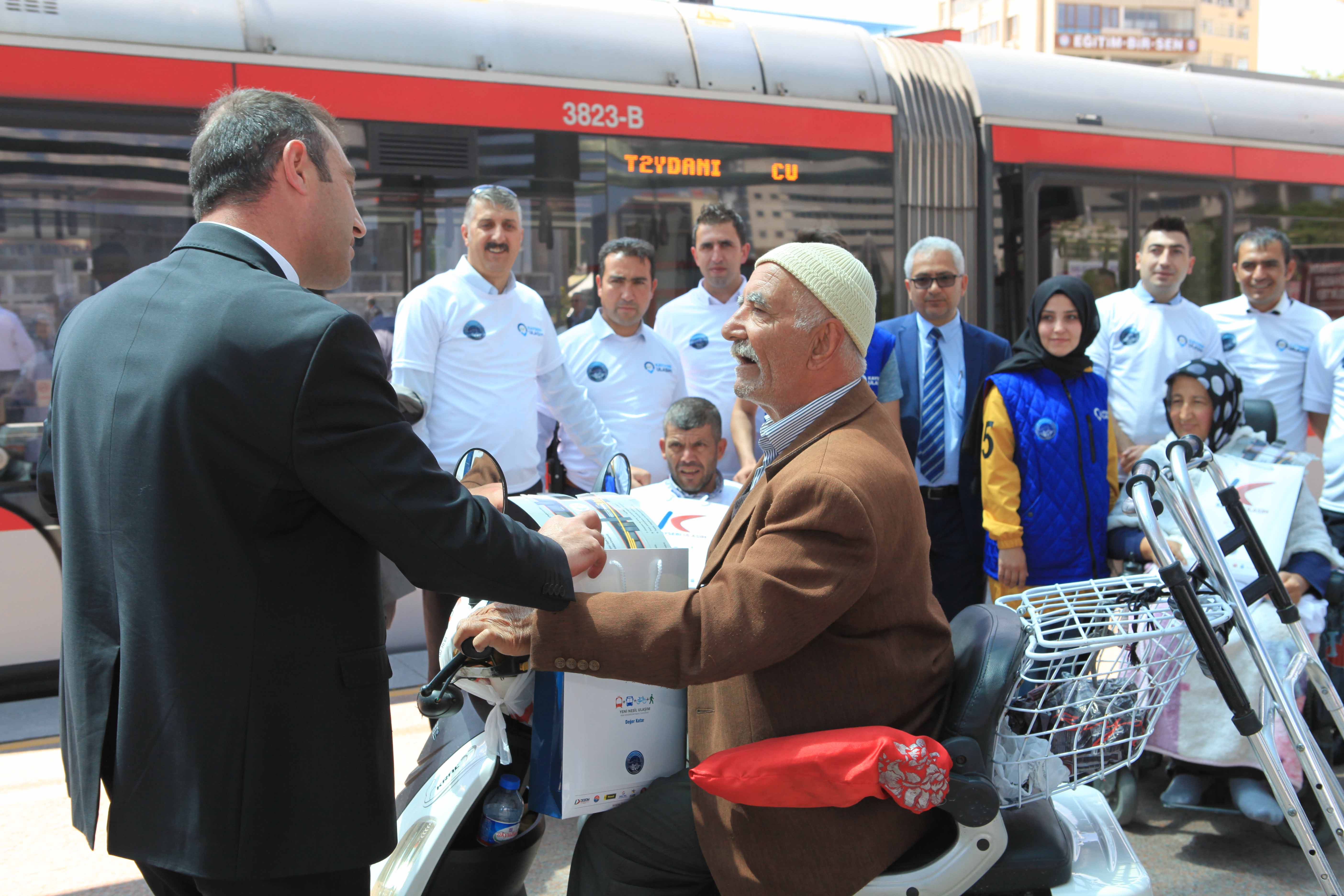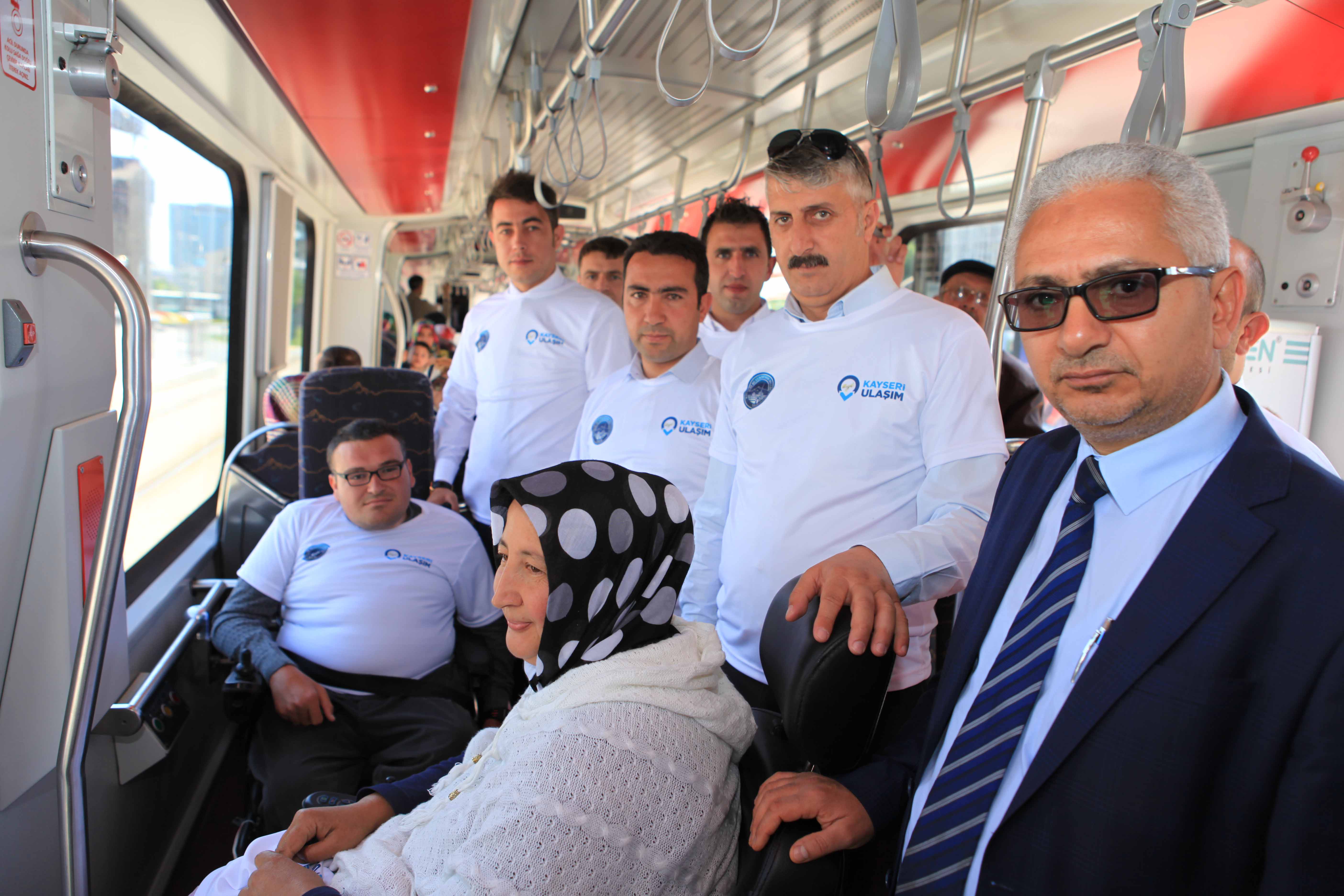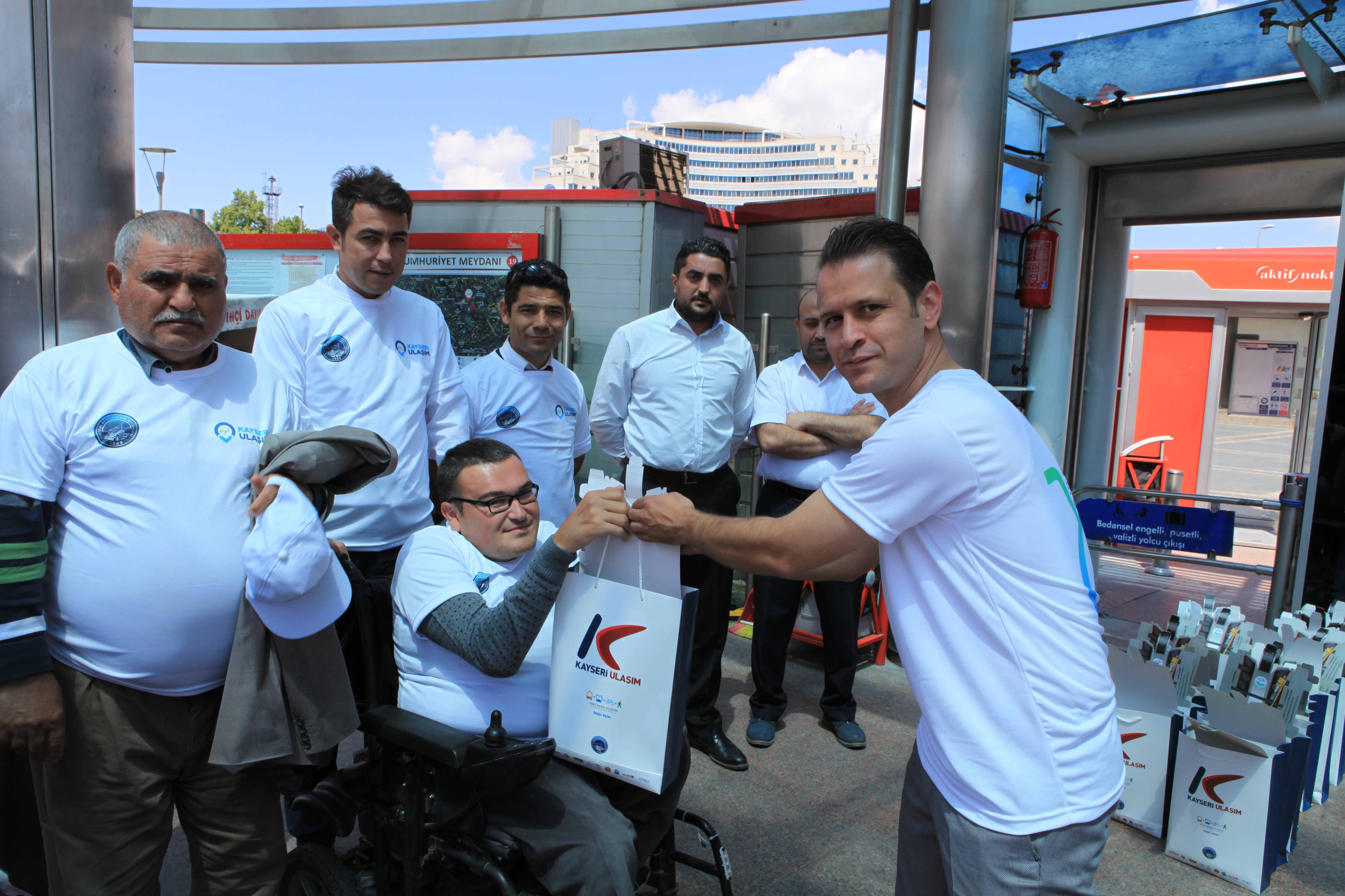 "Engelleri Birlikte Kaldıralım" sloganıyla yapılan proje kapsamında; Kayseri Büyükşehir Belediyesi Ulaşım A.Ş.’nin raylı sistem, otobüs ve otopark alanlarında çalışan personelleri, tekerlekli sandalyeli yolcularla birlikte raylı sistem araçlarıyla yolculuk yaptı. Engelli vatandaşların raylı sisteme biniş ve inişlerine yardımcı olan görevliler ise engelli vatandaşların güvenli yolculuk yapabilmeleri için yapmaları gerekenleri anlattı. Anadolu Sakatlar Derneği Genel Sekreteri Ahmet Özkan yetkililere teşekkürlerini ileterek, engelli vatandaşların rahatlıkla raylı sistem aracıyla yolculuk yaptığını kaydetti. Özkan, "Kayseri Büyükşehir Belediyesi Ulaşım A.Ş.’ye çalışmalarından dolayı teşekkür ediyorum. Burada olması gereken engelsiz ulaşım, engellilerimizin ulaşabilirliği. Şu anda engellilerimiz, tekerlekli sandalyeleriyle rahatlıkla tramvaya binebiliyor, gidecekleri yere gidip gelebiliyor. Derneğimiz ve engelli vatandaşlarımız adına bu güzel farkındalık çalışması için teşekkür ediyoruz. Kayseri Ulaşım A.Ş’nin Engelli Ulaşım Personeli de engelli ve yaşlı yolculara çok yardımcı oluyor. Buna her gün şahit oluyoruz. Bu projenin uzun yılar sürmesini temenni ediyoruz.” şeklinde konuştu.