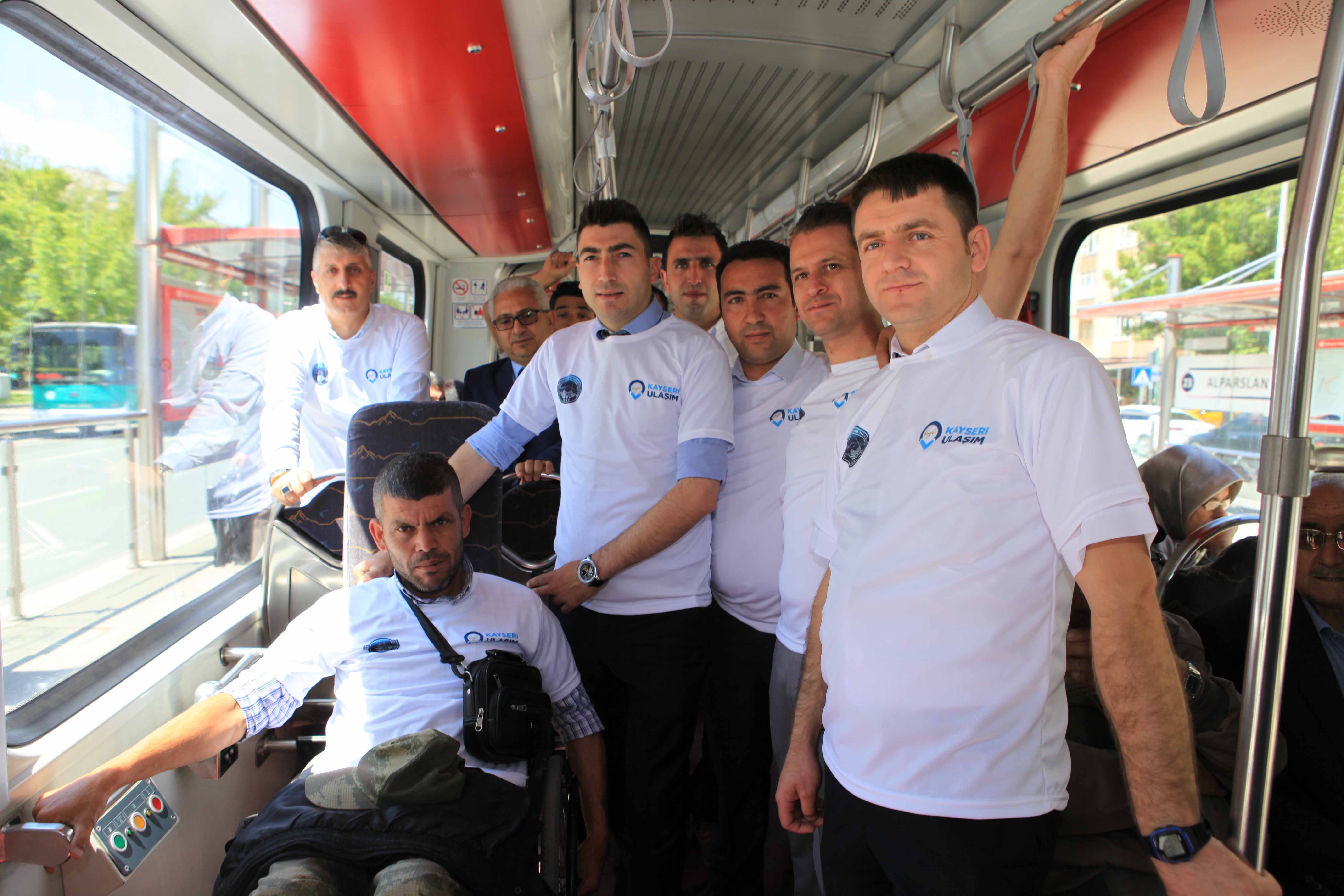 Kayseri Büyükşehir Belediyesi Ulaşım A.Ş. ile Anadolu Sakatlar Derneği’nin Engelliler Haftası dolayısıyla düzenlediği ‘Engelsiz Ulaşım Projesi’ kapsamında Kayseri Ulaşım A.Ş çalışanları engelli vatandaşlarla birlikte raylı sistem araçlarıyla yolculuk yaptı.