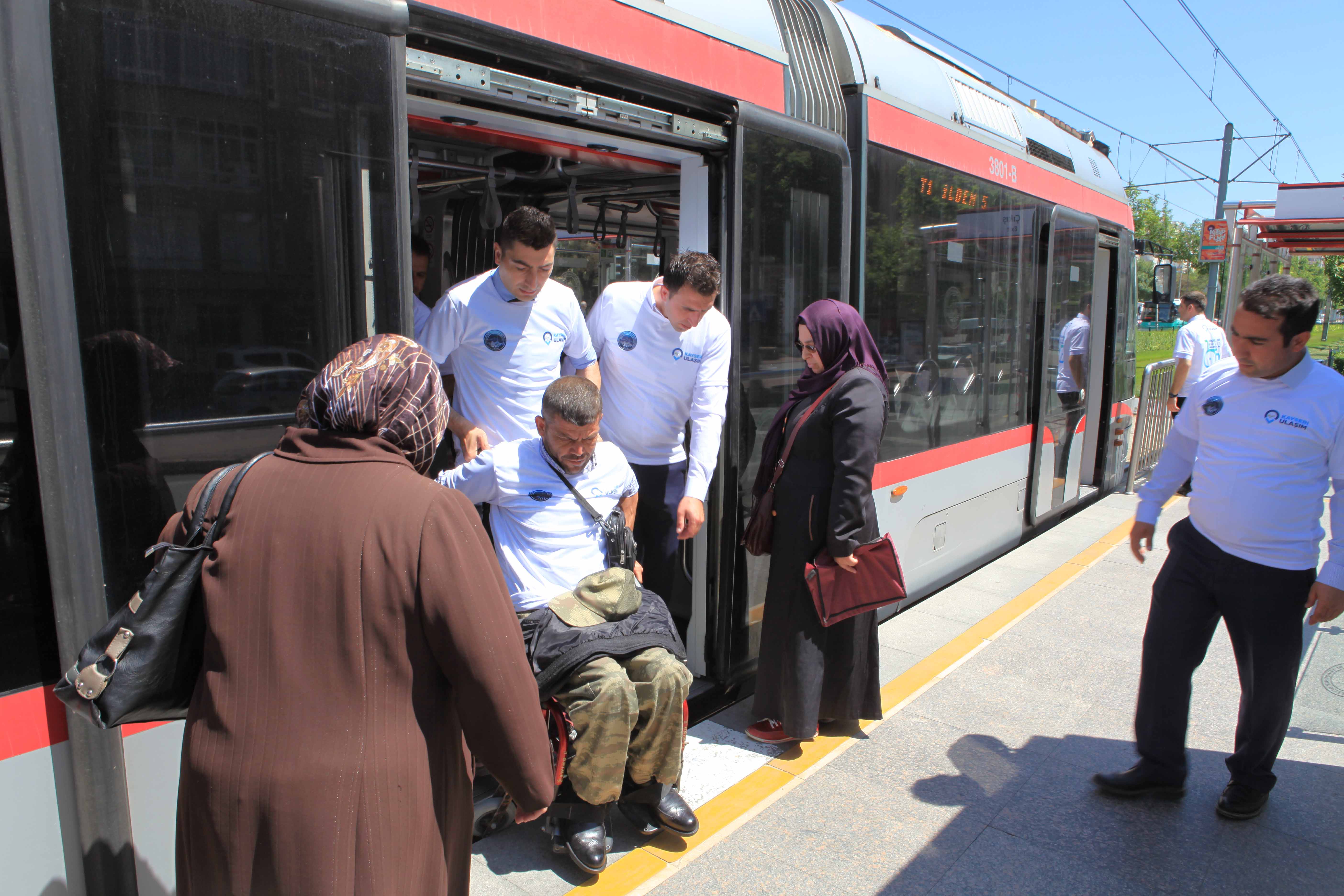 Tekerlekli sandalye ile raylı sistem aracında yolculuk yapan engelli vatandaşlar ise raylı sistem aracıyla rahatlıkla yolculuklarını yapabildiklerini, Engelli Erişim Personelleri’nin ise kendilerine çok destek olduğunu, zorlandıkları noktalarda hızlı bir şekilde yardıma koştuklarını ve bu hizmeti sağlayan Büyükşehir Belediyesi ve Ulaşım A.Ş. yetkililerine teşekkürlerini sunduklarını dile getirdiler.