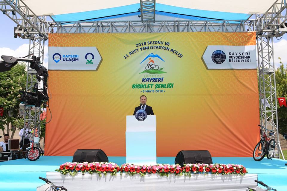 Törende konuşan Ulaşım A.Ş Genel Müdürü Feyzullah Gündoğdu “ Kayseri bisiklet paylaşım sistemini sevdi. İhtiyaçlar arttıkça sistemi geliştirmek istedik. Yurt dışı kaynaklı olunca engellerle karşılaştık. Bu durumda sistemi biz kendimiz geliştirmeye karar verdik. Bu yıl istasyon sayımızı 51’e yükselterek 33 bin kullanıcıya ulaştık. Türkiye’de en yüksek bisiklet paylaşım sistemi kullanıcısına sahip olan bir sistemimiz var. Bu bilgi ve birikimi 6 farklı şehirde de yapıyoruz. Bisikleti hobi amaçlı değil bisiklet paylaşım sisteminin bir parçası olarak kullanıyoruz. Alt yapımızı buna göre hazırladık” diye konuştu.