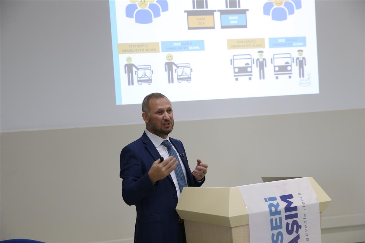 Genel Müdür Gündoğdu, toplantıda, “2016’da 123 milyon yolcu taşıması olurken, 2019’da 131 milyon yolcuya çıkmışız. Bu ne demek hizmet kalitesindeki artış yolcudan da talep görmeye başlıyor. Pandemi döneminde yüzde 50’ler civarında düşüşler var” diyerek, kilometre başına düşen toplu taşıma araçları otobüs ve tramvaylardaki yolcu sayısı ile ilgili sayısal verileri paylaştı. Daha az trafikte kalma süresi, daha az yol işgali, daha az trafik, daha az yol bakımı ve daha az gürültü gibi konuların yer aldığı entegre ulaşım modelleri ile ilgili de bilgi veren Gündoğdu, pandemi sürecinde Kayseri Ulaşım A.Ş. olarak korona virüsten korunmak için yapılan çalışmaları anlattı.