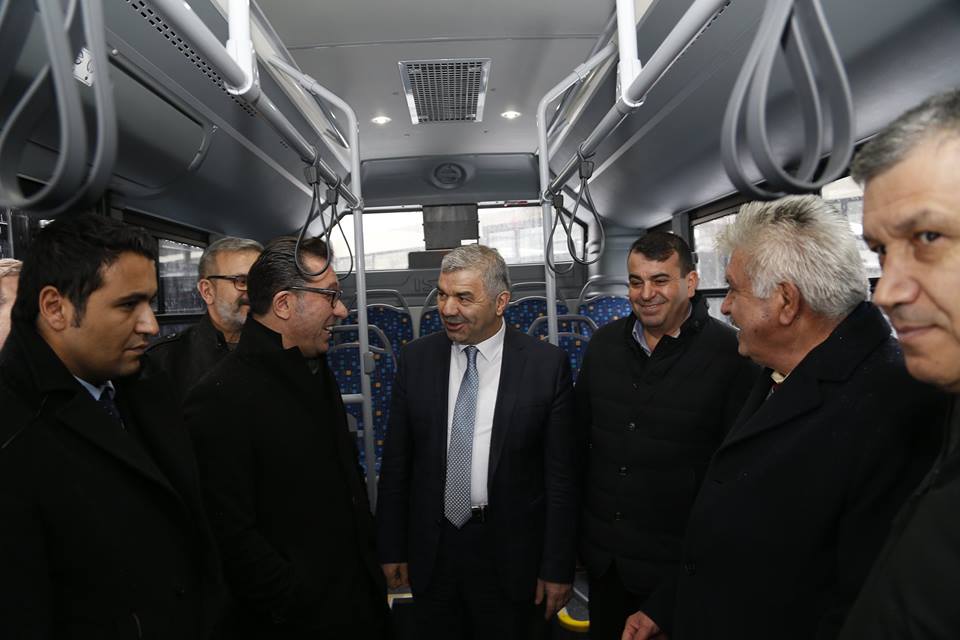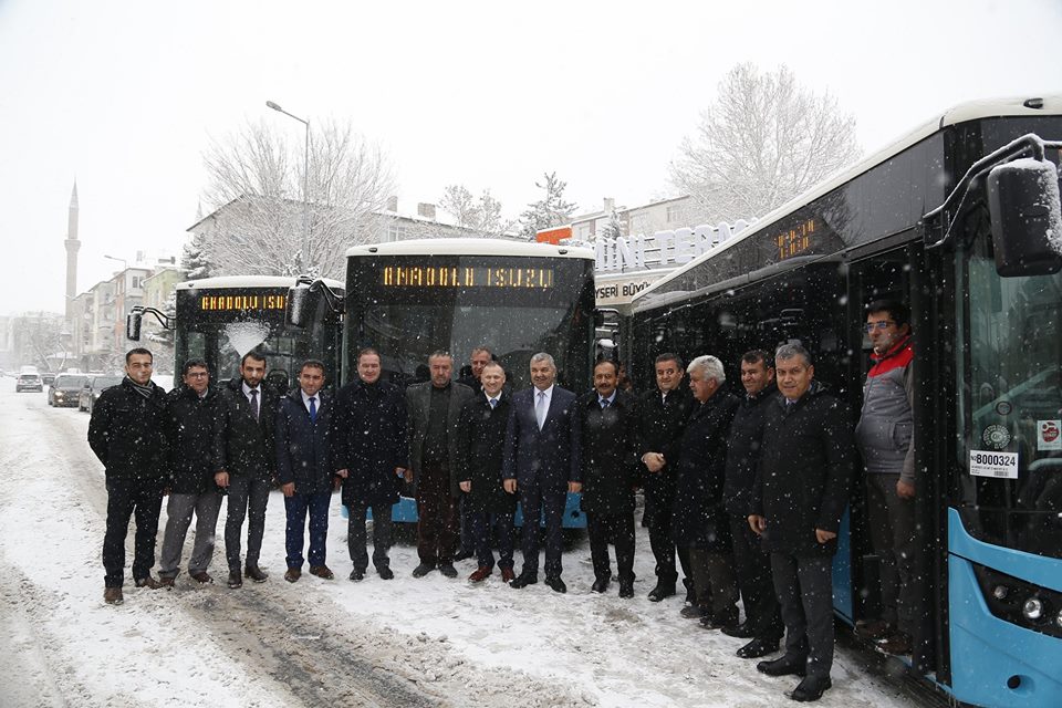 Kayseri Büyükşehir Belediye Başkanı Mustafa Çelik, mini terminal hatlarında çalışmak üzere alınan 12 yeni midibüs ve otobüsün tanıtımını yaptı.