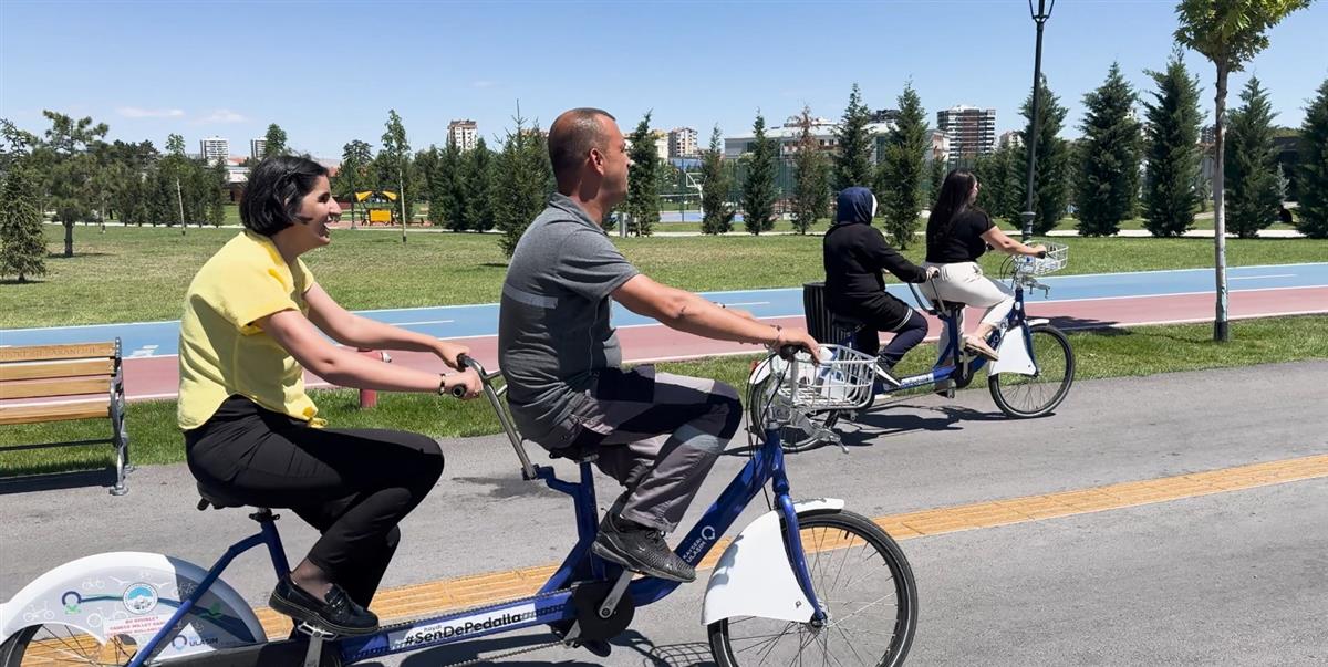 Görme engeli olan 7 öğrenci, Ulaşım A.Ş. tarafından hazırlanan KAYBİS ile tandem bisiklet sürmenin keyfini yaşadı. Öğrenciler ilk kez bisiklet deneyimi yaşarken, öğrencilerin aileleri de bu mutluluğu birlikte hissetti.