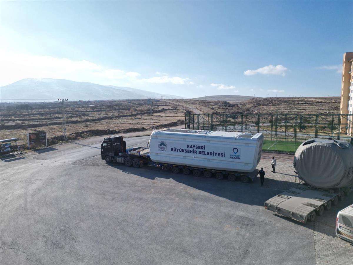 Kayseri Büyükşehir Belediyesi Ulaşım A.Ş. tarafından hayata geçirilecek olan Türkiye’nin toplu ulaşım sektöründeki ilk Rüzgâr Enerji Santrali projesi için Kayseri’ye dev türbin parçaları ulaşıyor. Hafta sonu itibarıyla kurulan ilk türbinin montajının tamamlanması planlanıyor.