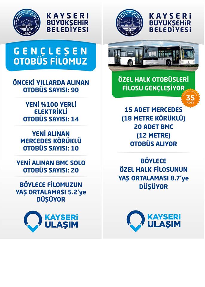 Büyükşehir Belediye Başkanı Çelik, halk otobüslerinin de yenilenmesi için yaptıkları çalışmalardan da bahsederek halk otobüsçülerinin de 15 adet körüklü otobüs sözleşmesi yaptıklarını söyledi. Başkan Çelik mevcut otobüslerin yenilenmesi için de Otobüsçüler Esnafı Odası Başkanı Ahmet Erkan’dan söz aldı ve yıl sonuna kadar 25 otobüsün yenilenmesini istedi. Başkan Çelik, önümüzdeki senelerde de yenileme çalışmalarını devam edeceğini kaydetti.