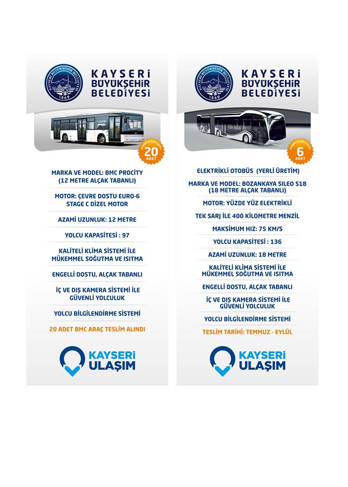 Cumhurbaşkanımız Recep Tayyip Erdoğan tarafından açılışı yapılan Şehir Hastanesi’nin tam kapasiteye ulaşmasıyla günlük 50 bin insanın ulaşımının sağlanması gerektiğini vurgulayan Büyükşehir Belediye Başkanı Çelik, Kocasinan Belediye Başkanlığı dönemindeki en önemli vaadi olan Bekir Yıldız Bulvarı’nı hastane bitmeden tamamladıklarını belirtti. Raylı sistem aracı büyüklüğünde olacak elektrikli otobüslerin hastane hattında çalışacağını ifade eden Başkan Çelik, “25 metre boyunda olan raylı sistem araçlarının uzunluğundaki otobüsler Hastaneler Hattı dediğimiz Erciyes Üniversitesi-Devlet Hastanesi-Şehir Hastanesi arasında çalışacak. Bu otobüslerin teslim süresi temmuz ayından başlayarak eylül-ekim ayına kadar sürecek ve her ay 2-3 otobüs teslim edilecek. Bunlar teslim edilene kadar çalışması için 8 adet otobüs daha aldık. Bu otobüsler yüzde yüz yerli tasarım otobüsler. Yolcu kapasitesi 210 kişi. Sabaha kadar şarjda kalacaklar ve akşama kadar çalışacaklar. Aldığımız 14 elektrikli, 10 adet körüklü, 20 solo otobüsle birlikte filomuzun yaş ortalamasını 5,2’ye çekiyoruz. Türkiye ortalamasından daha iyiyiz” diye konuştu.