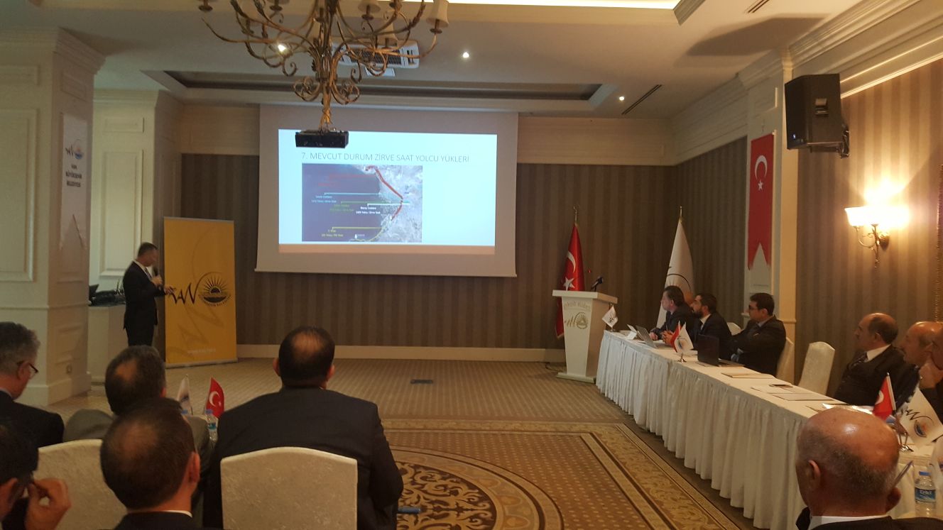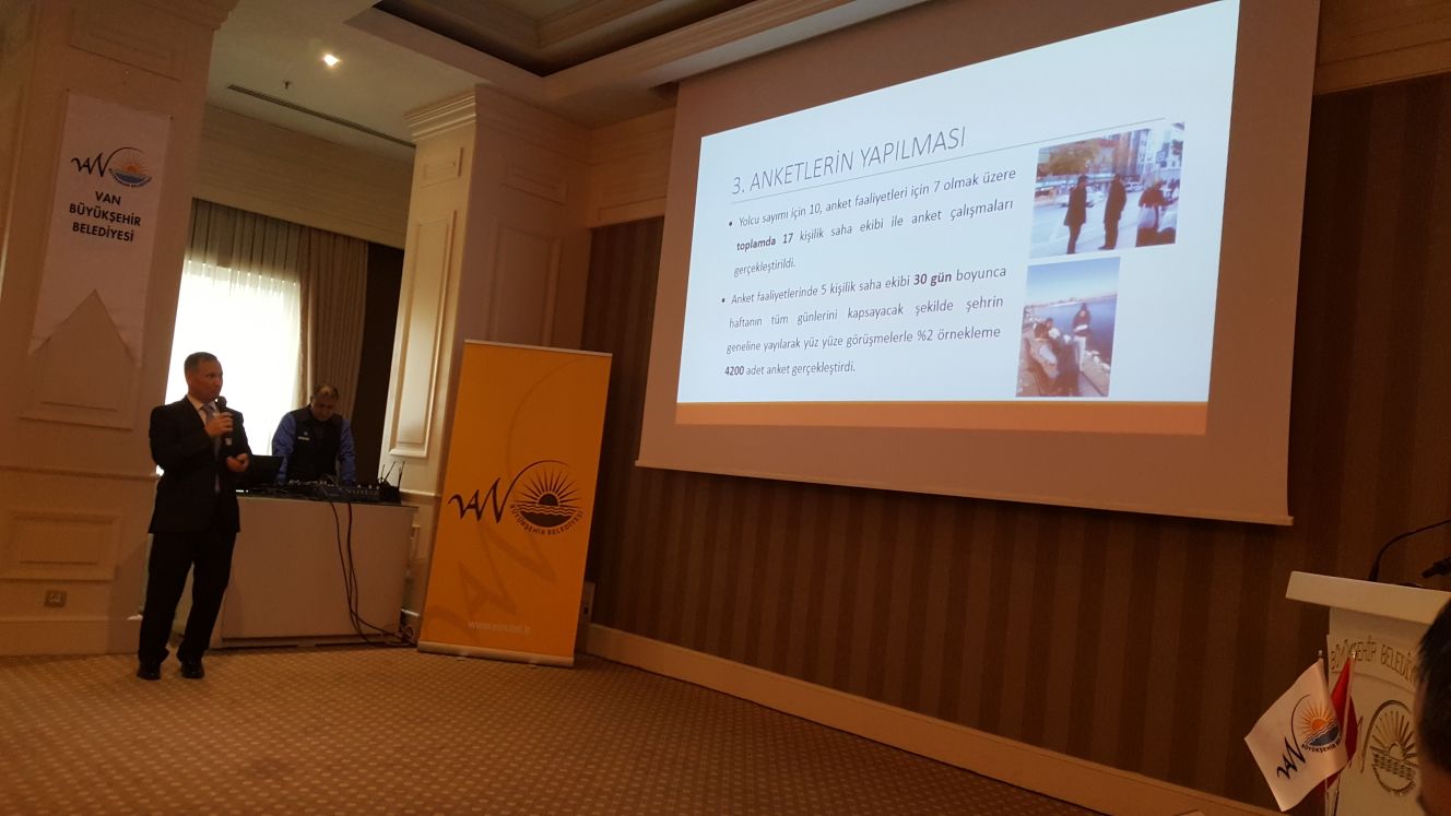 Kayseri'den edindikleri bilgi ve birikimleri Van’a da taşıdıklarını dile getiren Feyzullah Gündoğdu, Türkiye’de birçok ilde proje çalışmaları yaptıklarını ve söz konusu etüt çalışmalarından birini de Van'da gerçekleştirdiklerini söyledi. Gündoğdu, sunumunda Van’daki caddelerde meydana gelen yoğunluklara ve hangi saatler aralığında yoğunluğun arttığına dair rakamlarla bilgiler verdi. Önümüzdeki süreçte Van’a ne tür bir ulaşım sistemi yapılabileceğine dair araştırma yaptıklarını dile getiren Gündoğdu; “Van'da 110 ayrı hatta, hafta içi ve hafta sonu olmak üzere saat saat yolcu araştırmaları yaptık, çeşitli bulvarlarda da araçların yoğunluk miktarları ve yolcu sayısını belirledik. Söz konusu verileri program aracılığıyla modelledik ve buna göre planlama yaptık.” dedi.