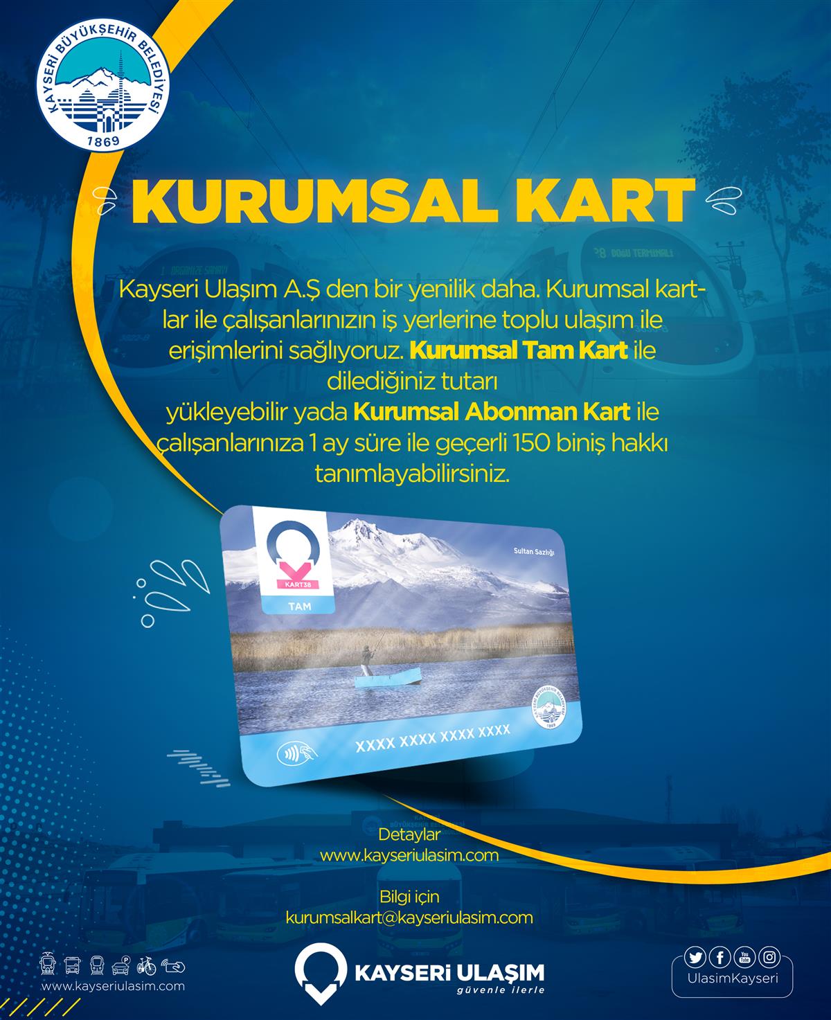 kurumsalkart@kayseriulasim.com adresi veya diğer iletişim kanallarından detaylı bilgi alabilirsiniz.