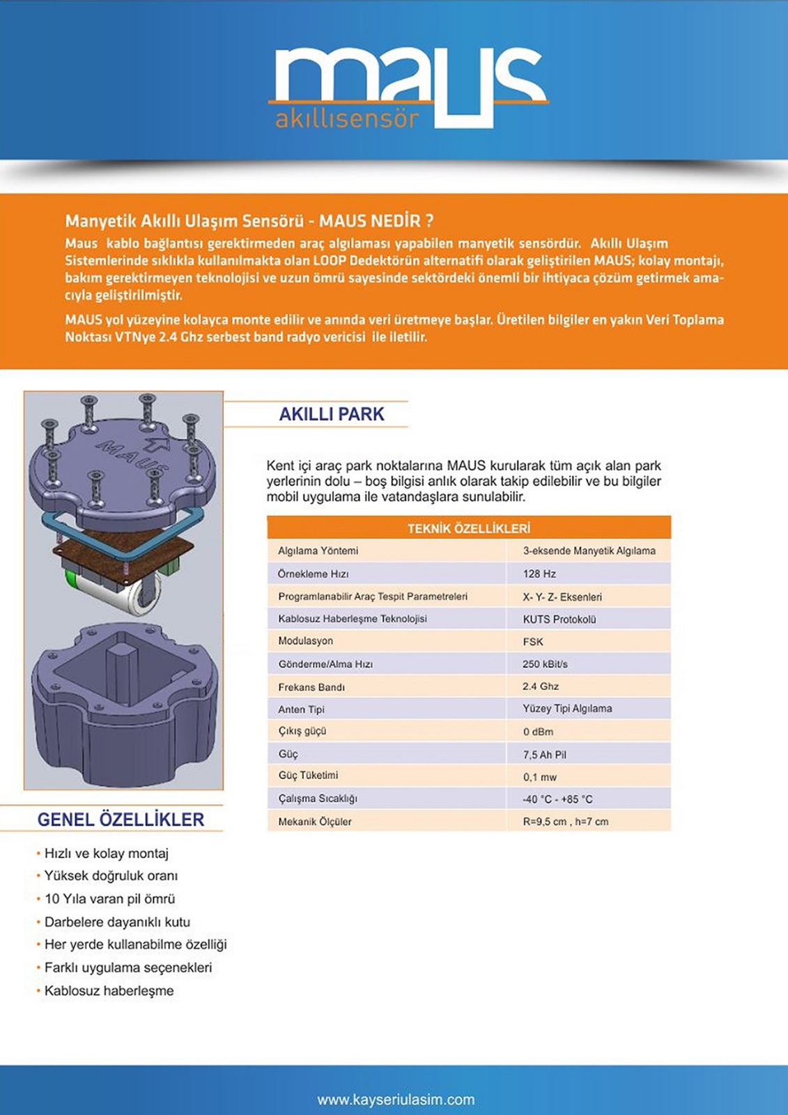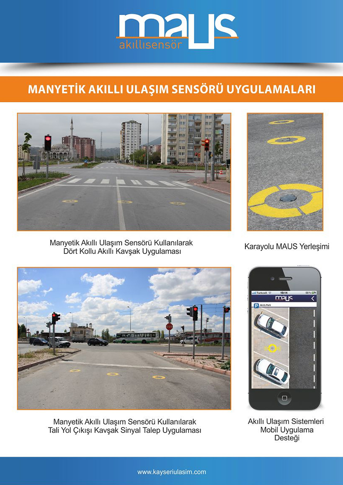 MAUS, kablo bağlantısı gerektirmeden araç algılaması yapabilen manyetik sensördür. Akıllı ulaşım sistemlerinde sıklıkla kullanılmakta olan “LOOP Dedektörü”nün alternatifi olarak geliştirilen MAUS; kolay montajı, bakım gerektirmeyen teknolojisi ve uzun ömrü sayesinde sektördeki önemli bir ihtiyarca çözüm getirmek amacıyla Kayseri Ulaşım A.Ş mühendisleri tarafından geliştirilen yerli bir üründür.